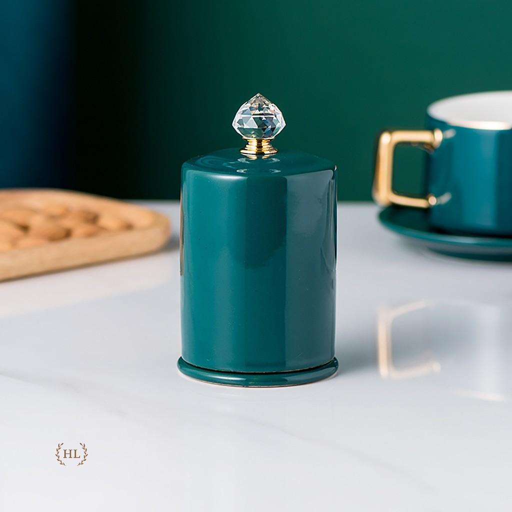 ✨Lọ Đựng Tăm Xanh Sứ Hoa Văn Hươu Cao Cấp Vàng Kim 2022 | Hũ sứ có nắp đậy đính đá size To