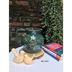 ✨Lọ hoa dáng bình rót sữa men xanh ngọc đắp nổi gốm sứ Bát Tràng (H21cm)