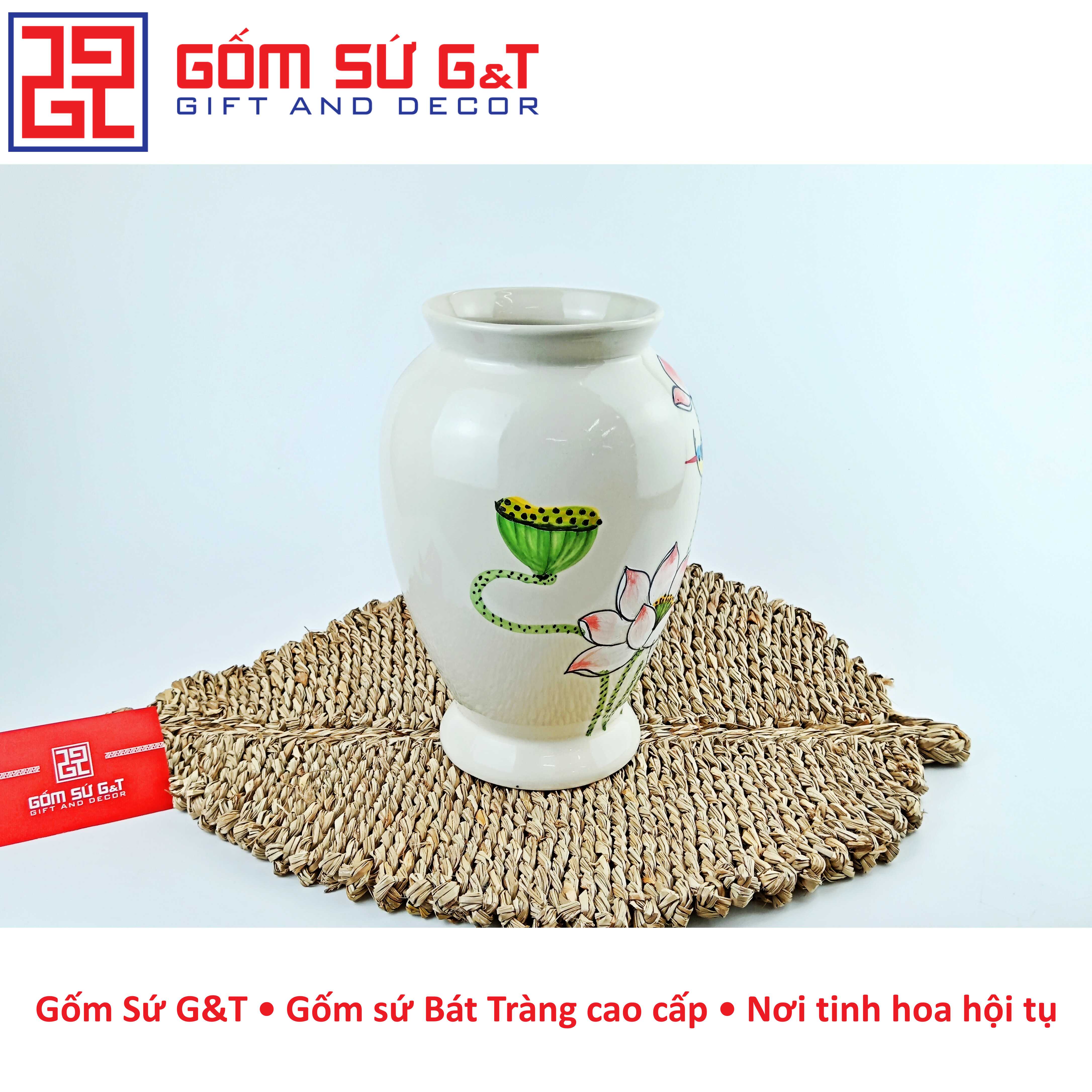 Lọ hoa dáng đùi dế vẽ sen hồng Bát Tràng là một sản phẩm thủ công độc đáo, được làm từ chất liệu gốm sứ cao cấp. Với thiết kế tinh tế và đa dạng về kiểu dáng, lọ hoa trang trí của gốm Bát Tràng đã trở thành một trong những sản phẩm trang trí nội thất được ưa chuộng nhất hiện nay.