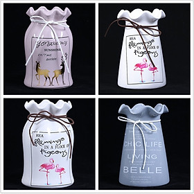 LỌ HOA GỐM SỨ, BÌNH CẮM HOA TRANG TRÍ PHONG CÁCH BẮC ÂU IN HÌNH CHIM HỒNG HẠC ĐỘC ĐÁO LS-01