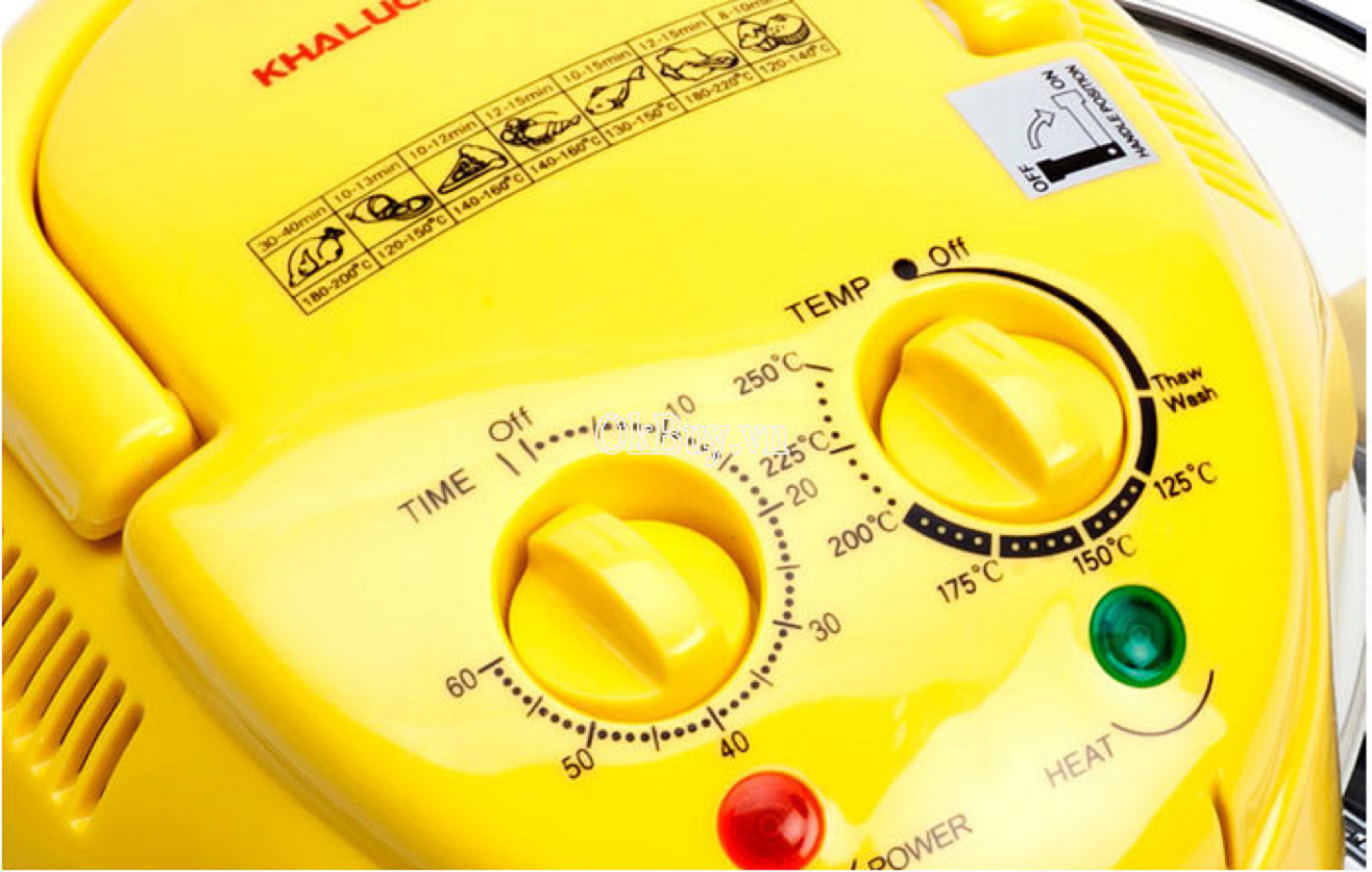 Mua tại Tiktok·Nguồn điện: 220-240V/50-60Hz; ·Bộ chỉnh nhiệt độ: 00C -2500C; . Bộ định thời gian : 0'-60' ·Bộ vi mạch điều chỉnh nhiệt tự động giúp tiết kiệm điện. ·Khoang lò bằng thủy tinh chịu nhiệt cao, trong suốt với đặc tính chống trầy xước; ·Có vĩ nướng thiết kế nướng 2 tầng làm tăng diện tích nướng đi kèm. ·Đa chức năng: Quay ,nướng, luộc, rã đông ·Loại bỏ chất béo gây Cholesterol; Trọng lượng : 7kg, hai màu: Màu vàng, trắng -Màu vàng chức năng nướng bằng bóng đèn halogen -Màu trắng chức năng nướng bằng điện trở (mayso)
