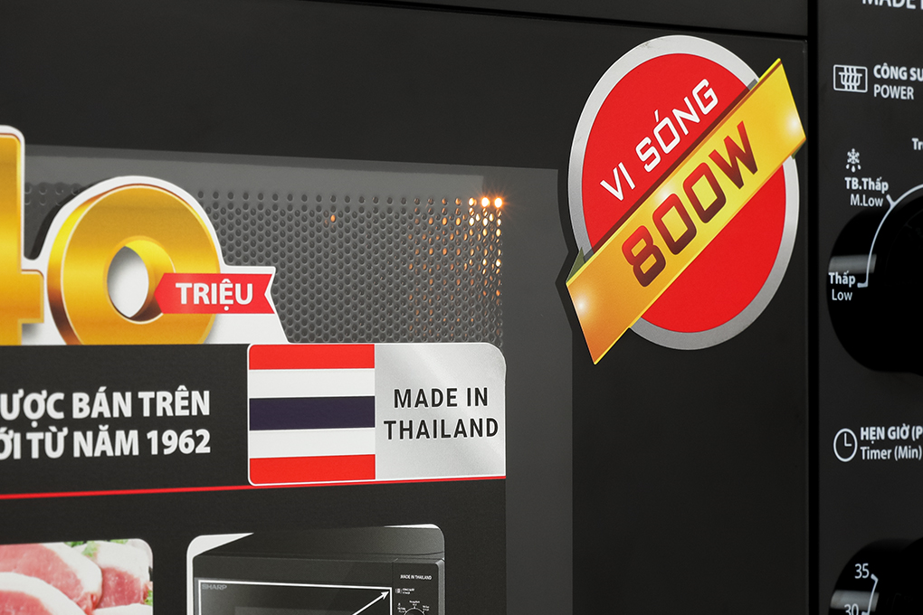 • Lò vi sóng Sharp này có công suất vi sóng 800W, cho khả năng làm nóng nhanh, tiết kiệm thời gian chờ đợi. - Dung tích 21 lít có thể bỏ vừa gà nguyên con khoảng 1 kg.