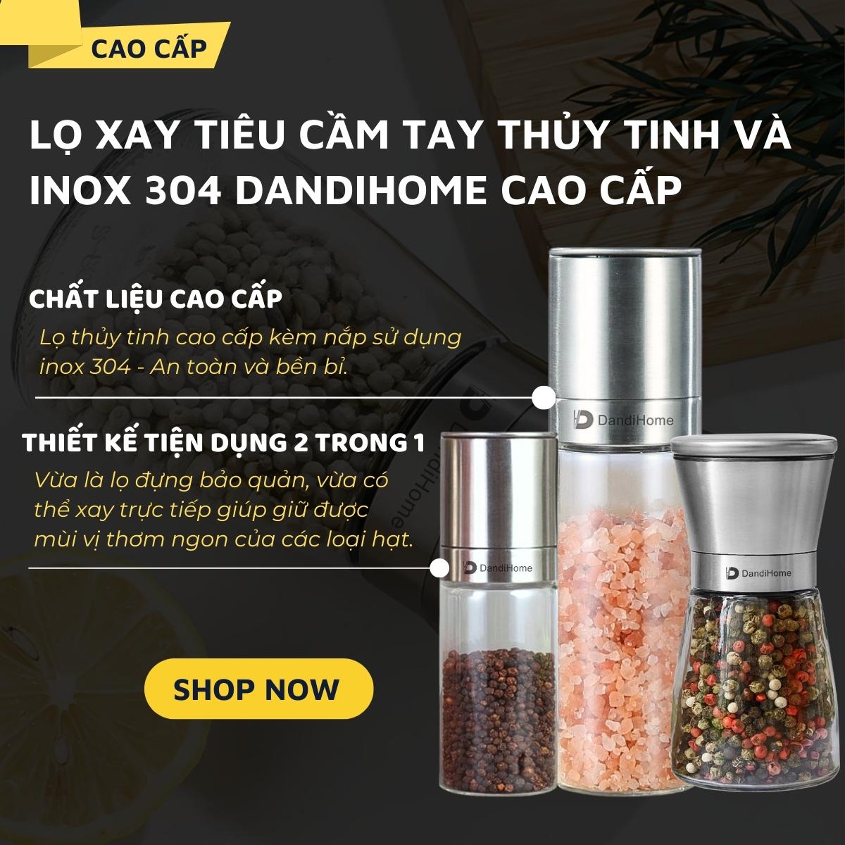 Lọ xay tiêu inox 304 và thủy tinh không chì DandiHome tiện lợi, bền bỉ