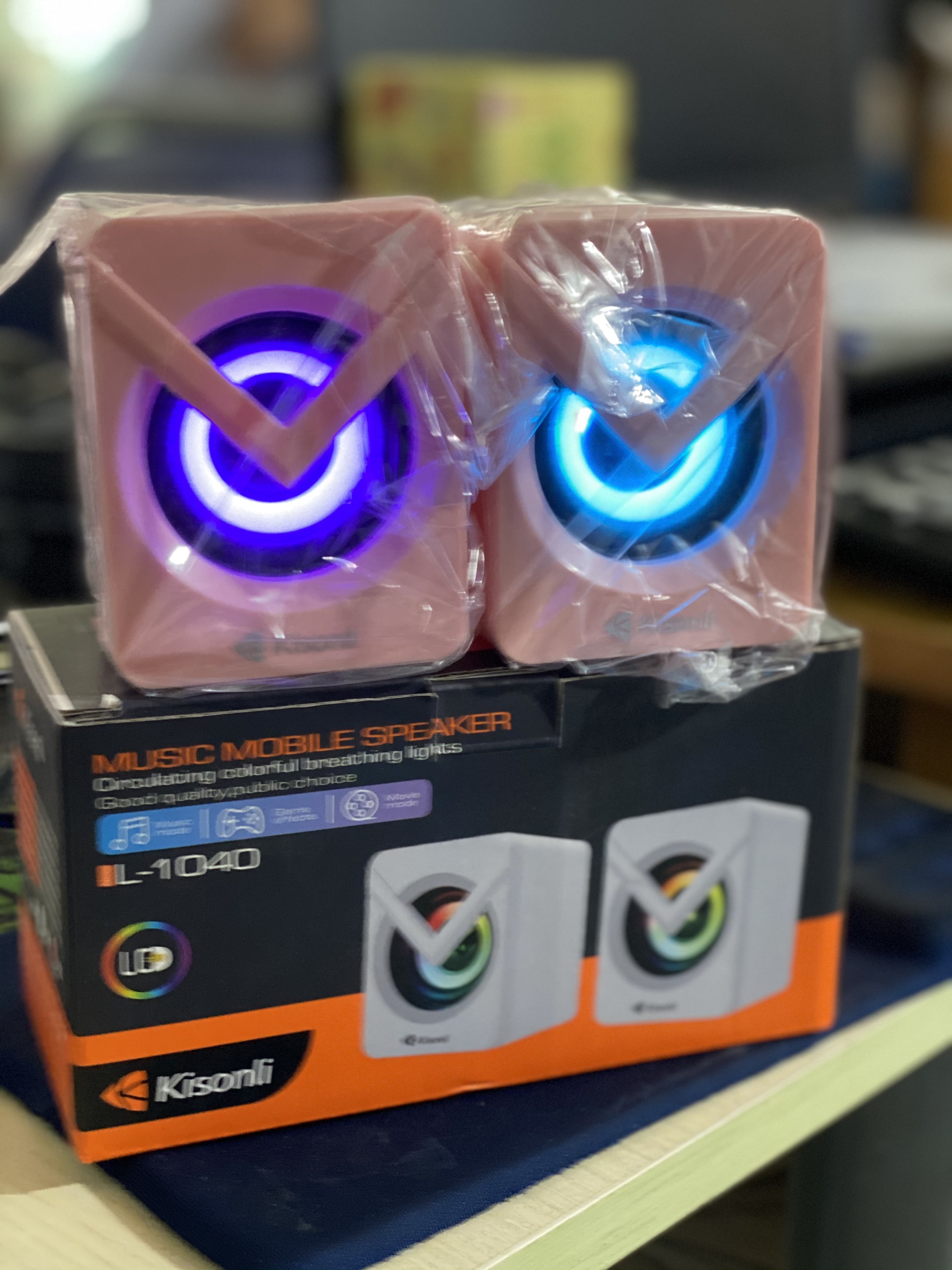 Loa Vi Tính 2.0 mini Kisonli L-1040 Led RGB Đổi Màu Hồng Siêu Cute Nghe Nhạc Cực Hay