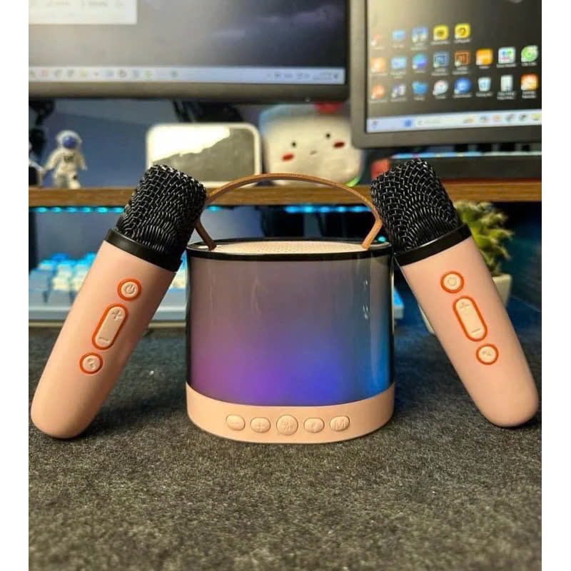 Loa Bluetooth Mini Karaoke Không Dây, Kèm 2 Mic, Âm Thanh Sống Động, Đèn LED 16 Màu