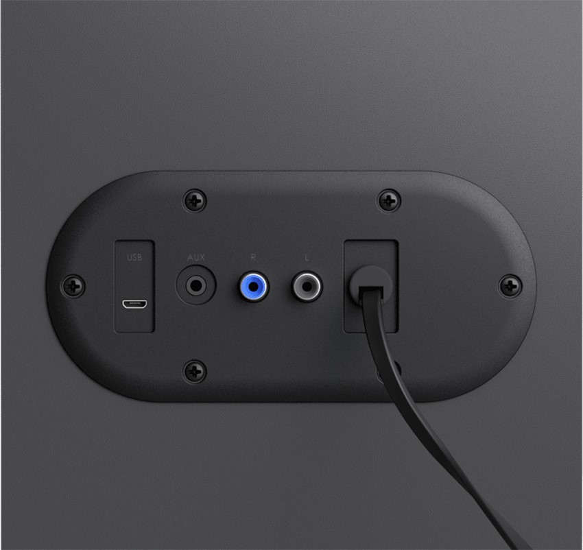 Phạm vi hoạt động của điều khiển từ xa là 20 mét cho phép bạn dễ dàng điều chỉnh âm lượng của âm thanh khi ngồi ở bàn làm việc hoặc trên ghế sofa ở đầu phòng bên kia. Ngoài ra, bằng cách nhấn và xoay nút xoay trên điều khiển từ xa, bạn có thể bật và tạm dừng phát lại, tua lại các bản nhạc và tắt tiếng / bật âm thanh hoặc chế độ âm trầm nâng cao.