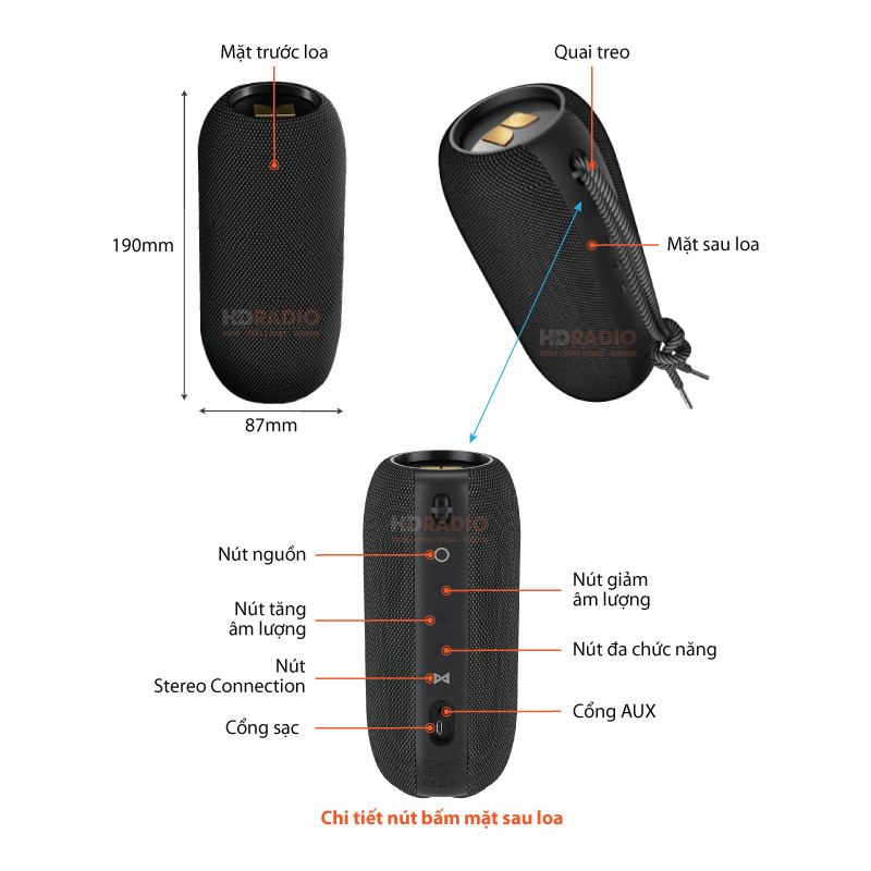 - Tương thích với bất kì thiết bị nghe nhạc nào sử dụng cổng 3.5mm Aux.