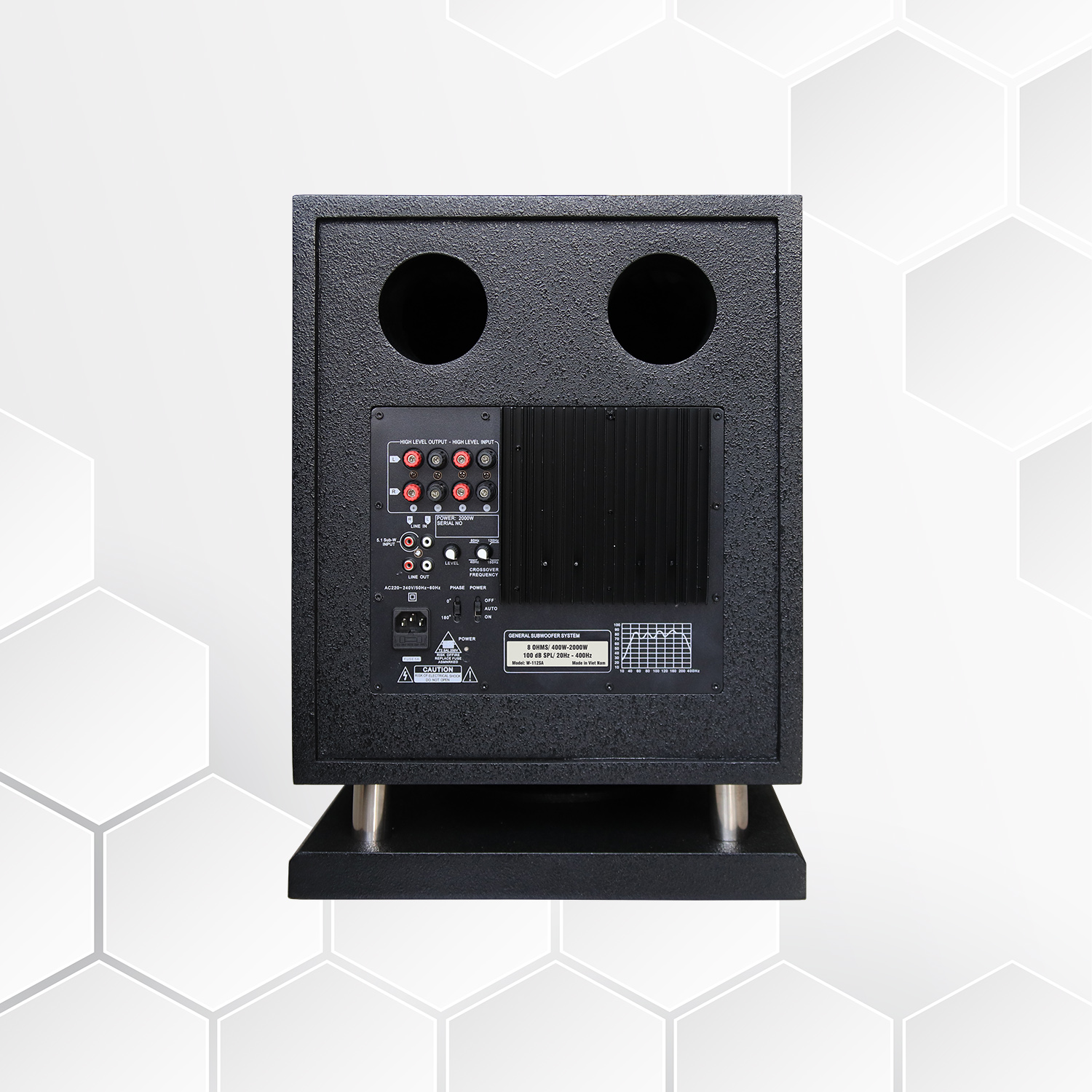. Hàng mới 100%. - Điện áp: AC 220v - Dải tần 20Hz~150Hz - Đường kính loa BASS: 20cm - Kích thước: 410(W) × 480(D) × 520(H)mm