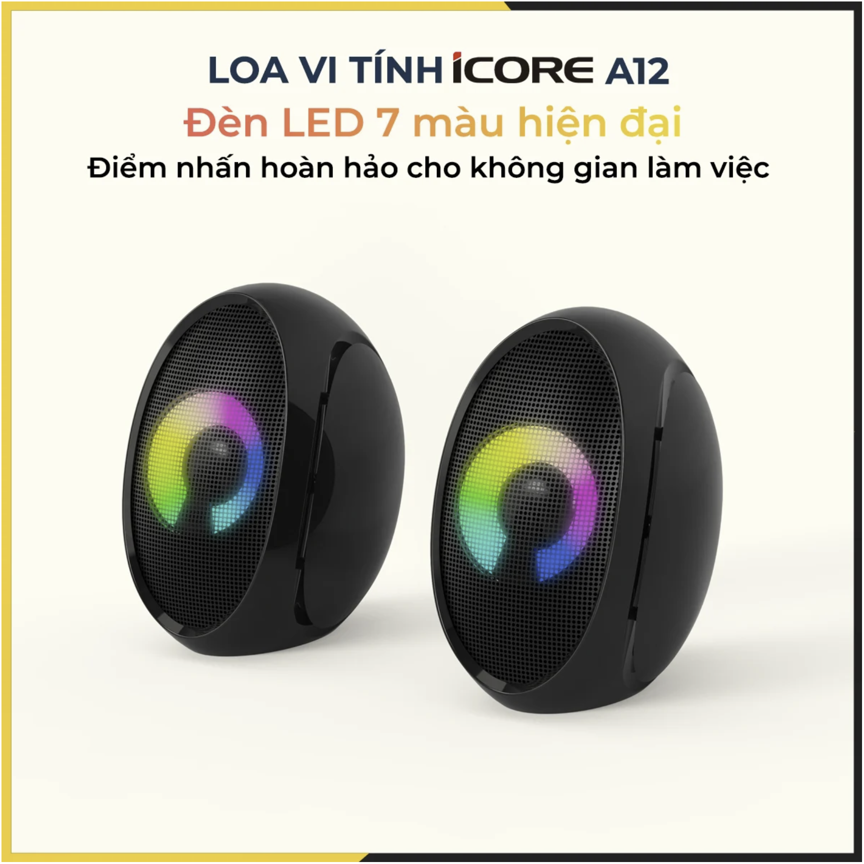 Loa Vi Tính iCore A12 là mẫu loa stereo cơ bản với đầy đủ những tính năng thiết yếu và tương thích tuyệt vời nhất với hầu hết mọi thiết bị. Dải đèn LED 7 màu là điểm nhấn giúp không gian làm việc, giải trí của bạn thêm sinh động hơn.