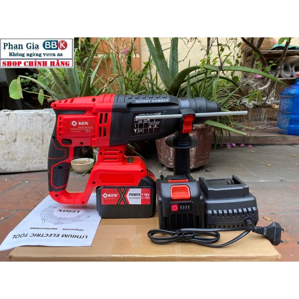 ✨[LOẠI 1] Máy Khoan Đục Bê Tông 3 Chức Năng Dùng Pin KEN 199V Động Cơ Không Chổi Than Bộ 2 Pin 15cell