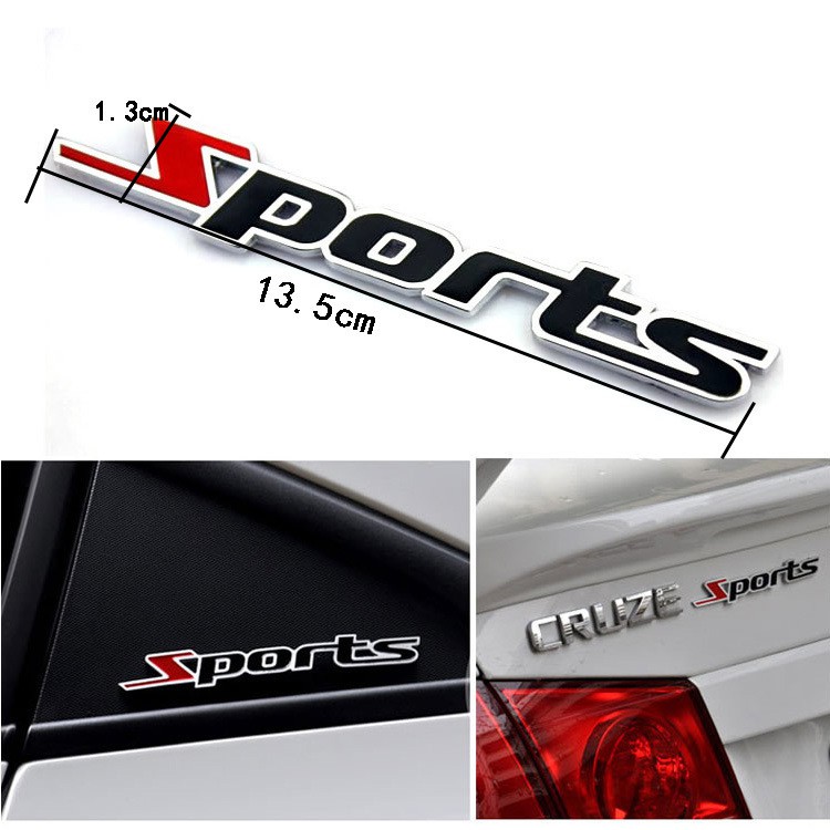 Logo kim loại chữ nổi SPORT dán ô tô,xe máy – Kích thước: 13.5 x 1.3 cm – Trọng lượng: 60g – Chất liệu: Kim loại – Cách sử dụng: dán trực tiếp bằng băng