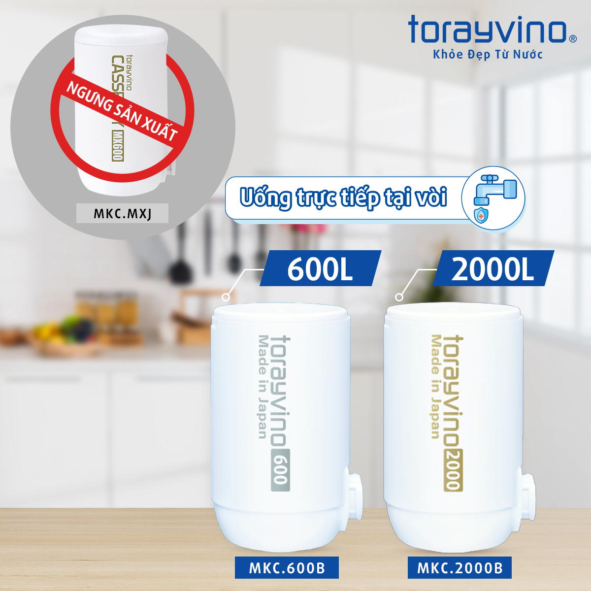 Mua tại TiktokLõi Lọc Thay Thế Torayvino MKC.2000B là lõi lọc nước mới nhất đến từ Nhật Bản cho các dòng thiết bị lọc nước tại vòi Torayvino với công suất lên đến 2000L, loại bỏ 13 tạp chất và 99,99% vi khuẩn có hại trong nước máy nhưng vẫn giữ nguyên được khoáng chất cần thiết cho nhu cầu uống trực tiếp và sử dụng nước sạch hàng ngày của gia đình. Vì sao nên sử dụng máy lọc nước đến từ Nhật Bản Torayvino Đặc điểm của bộ lọc nước thay thế Torayvino MKC.2000B:
