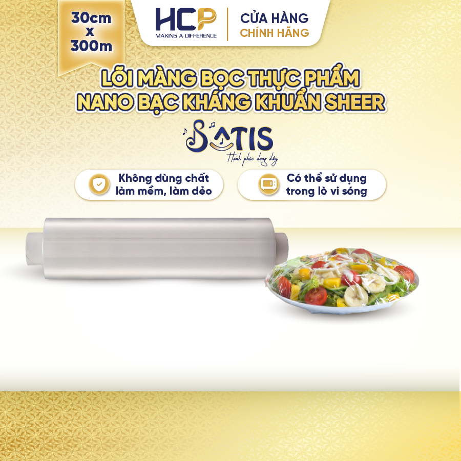 ✨Lõi Màng Bọc Thực Phẩm PE Kháng Khuẩn 30CMX300M SATIS Phủ Nano Bạc An Toàn Cho Sức Khỏe Dùng Được Cho Lò Vi Sóng