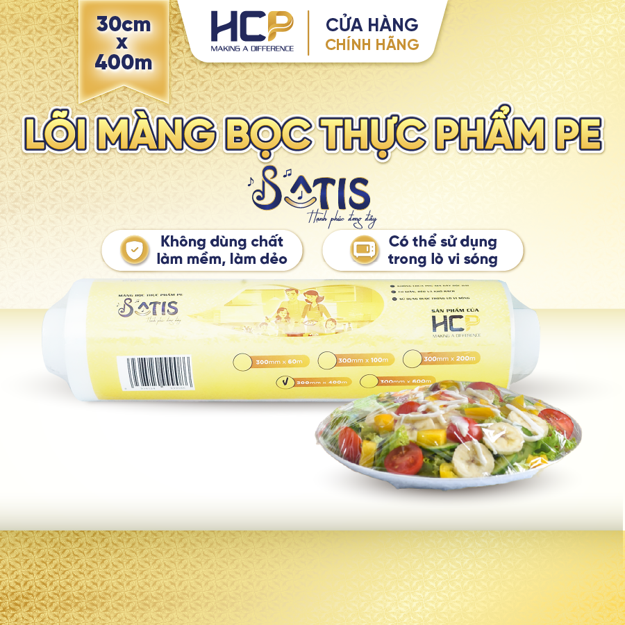 ✨Lõi Màng Bọc Thực Phẩm PE SATIS 30cm x 400m Không Chứa Chất Phụ Gia Gây Hại Sức Khỏe Dùng Được Cho Lò Vi Sóng
