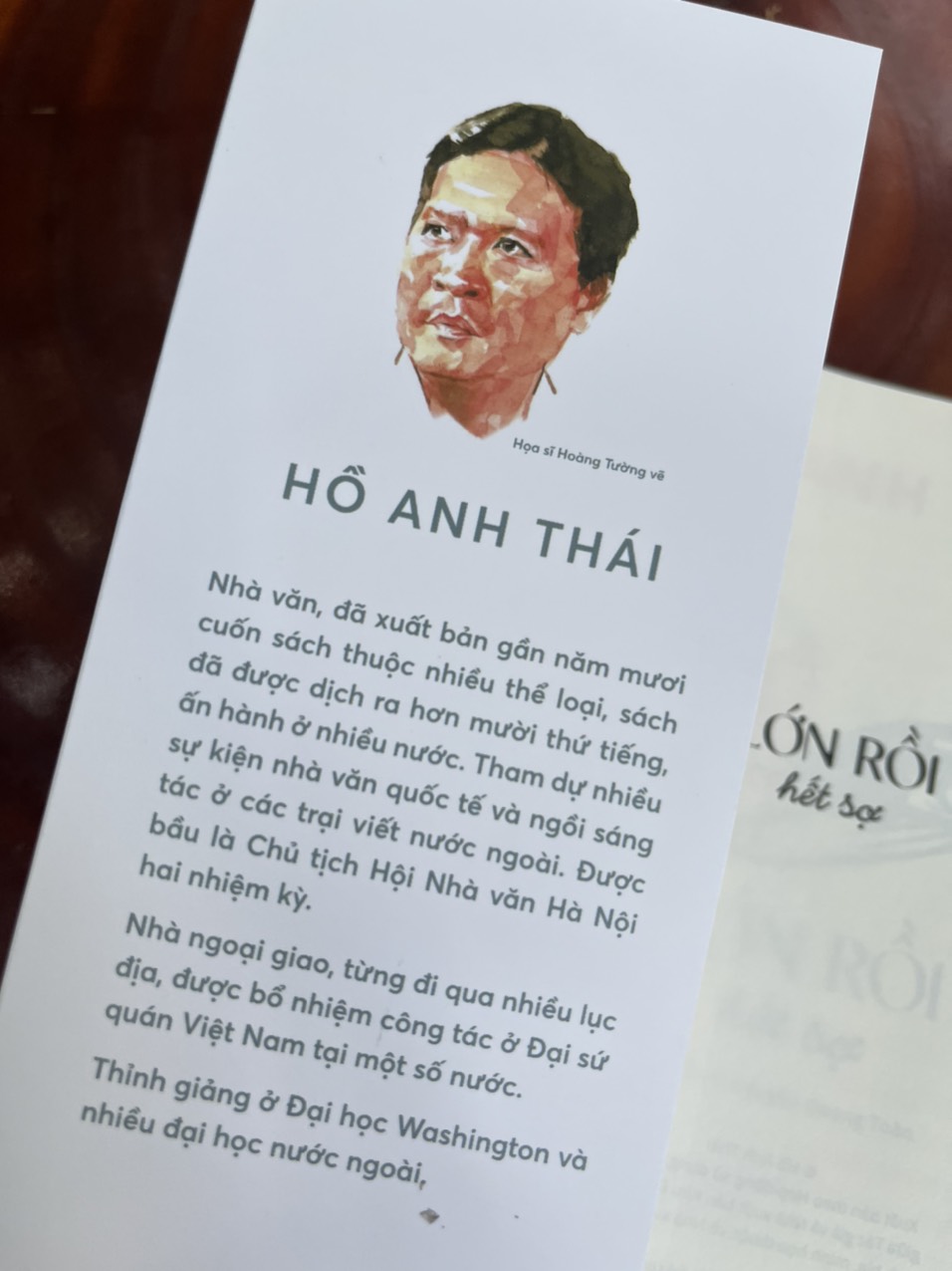 “Trong cuốn sách này, tôi chia sẻ một ít kỉ niệm đã xa, ngoảnh lại nhìn qua màn sương ký ức để thấy lại mình thời thơ bé. Khi còn nhỏ, tôi từng sợ rất nhiều thứ, nhưng tôi lớn lên không còn sợ đám đông, không sợ bóng tối, không còn sợ độ cao.” – Nhà văn Hồ Anh Thái.