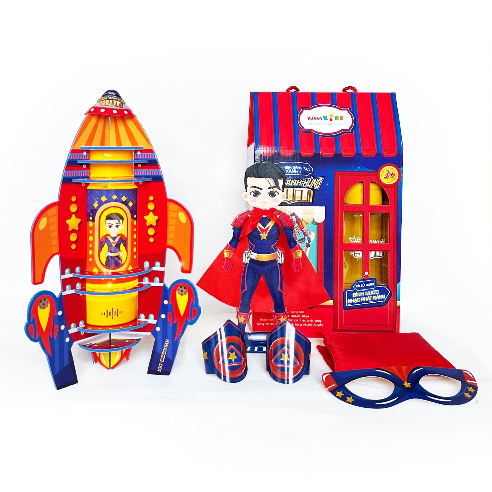 Các tính cách siêu anh hùng được khơi gợi cho các bé học hỏi như: sáng tạo, mạnh mẽ, trung thực, tôn trọng, yêu thương. Với các tính cách này bé hóa trang thành siêu anh hùng bé sẽ dễ dàng vượt qua thách thức để sáng tạo lắp ráp thành chiếc lồng đèn phi thuyền du hành lên cung trăng rước đèn cùng chị Hằng, chú Cuội với trí tưởng tượng mới.