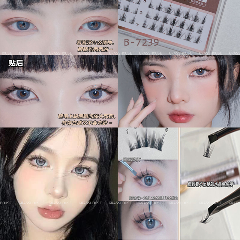 ✨Lông mi giả trong suốt BQI nâu B-7239 mô phỏng lông mi tự nhiên từng đoạn rời sợi đơn siêu mịn