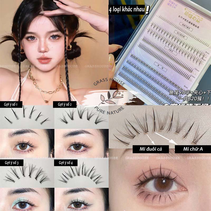 Chất liệu: tơ mềm làm từ thủ công Bộ sản phẩm: gồm 60 cụm Kiểu dáng: từng cụm nhỏ dài 10mm Loại lông mi giả này được làm thành từng cụm, giúp bạn có thể