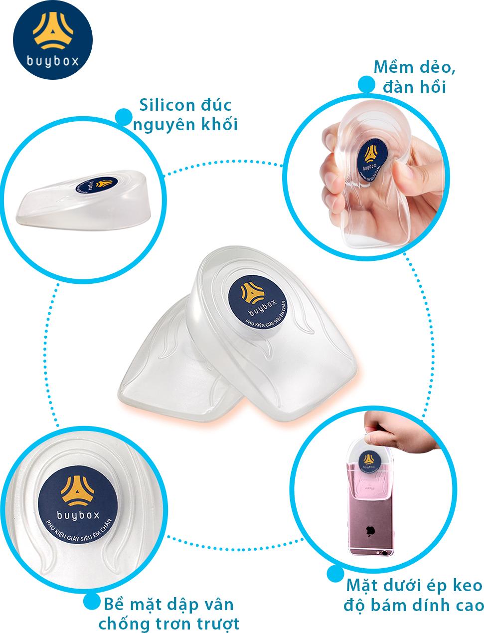 - Tăng chiều cao đơn giản là vì thích Lót giày độn đế silicon nguyên khối trong suốt buybox sẽ giúp bạn tăng đến 3 cm một cách tự nhiên và cực đơn giản CÔNG DỤNG NỔI BẬT