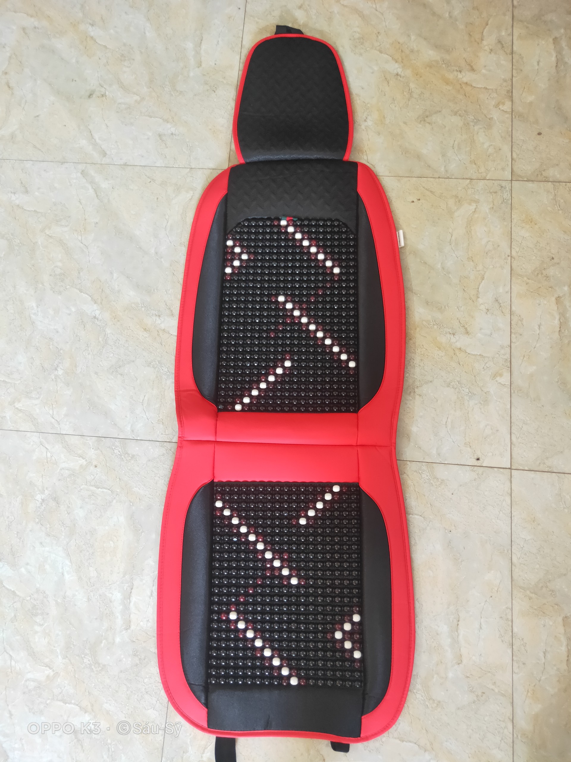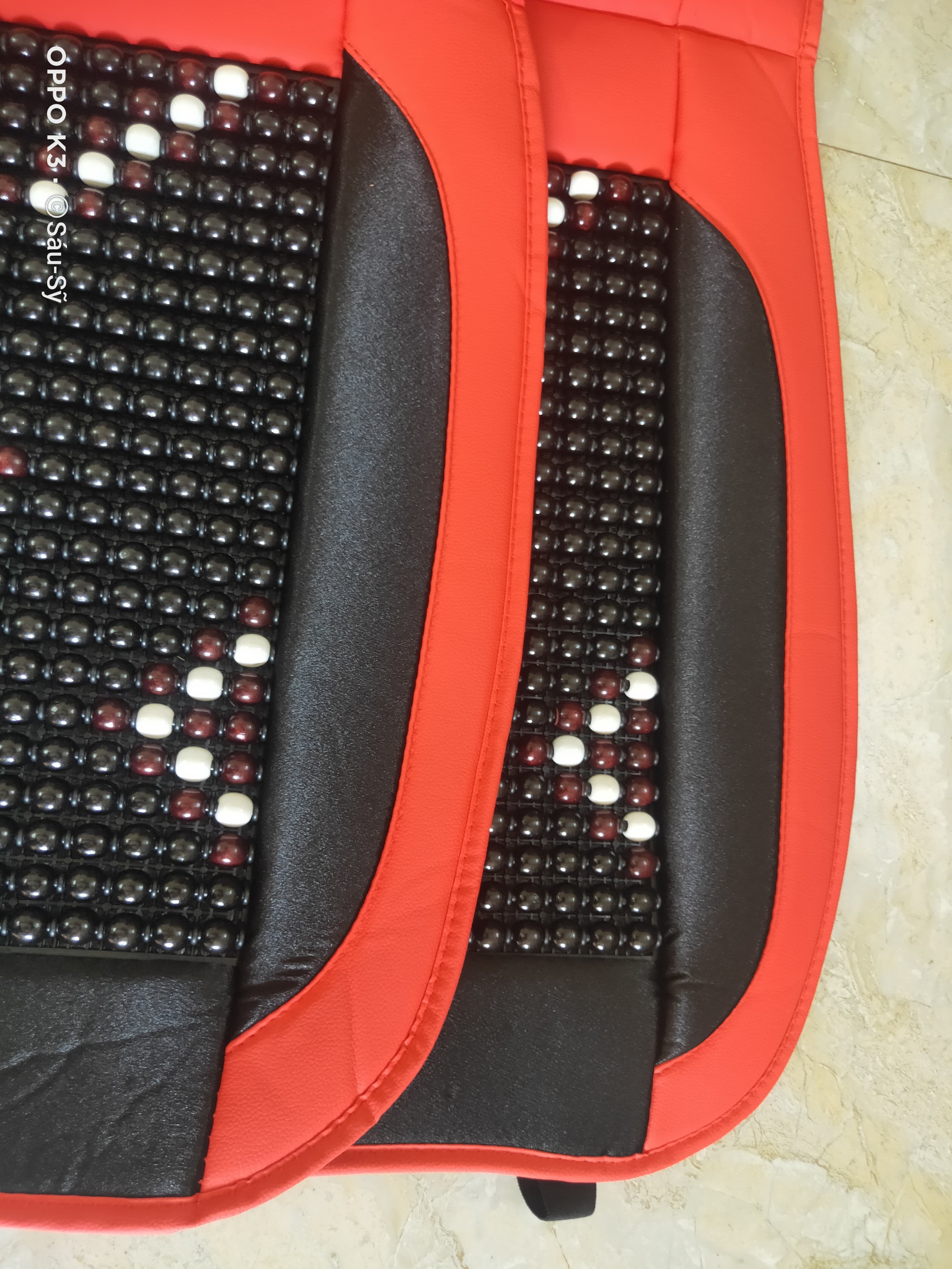 Mua tại TiktokLót Ghế Ô Tô hạt Gỗ Đệm Nỉ Cao Cấp họa tiết hoa văn màu Đen đỏ