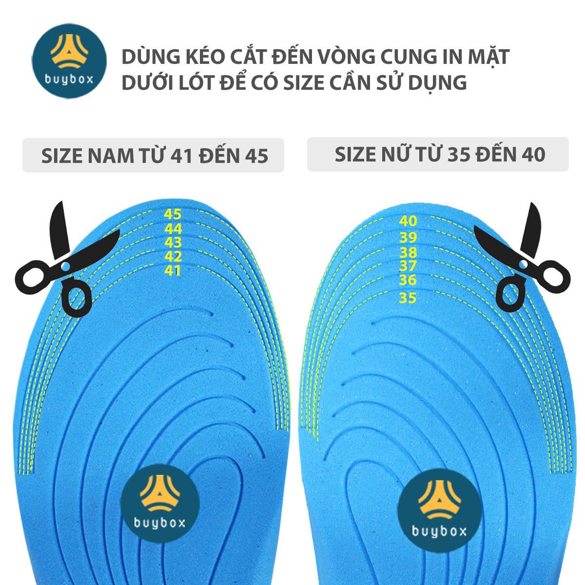 Sản phẩm có 2 loại kích thước: dùng cho giày nữ size từ: 35 - 36 - 37 - 38 - 39 - 40 và dùng cho giày nam size từ: 41 - 42 - 43 - 44 - 45.