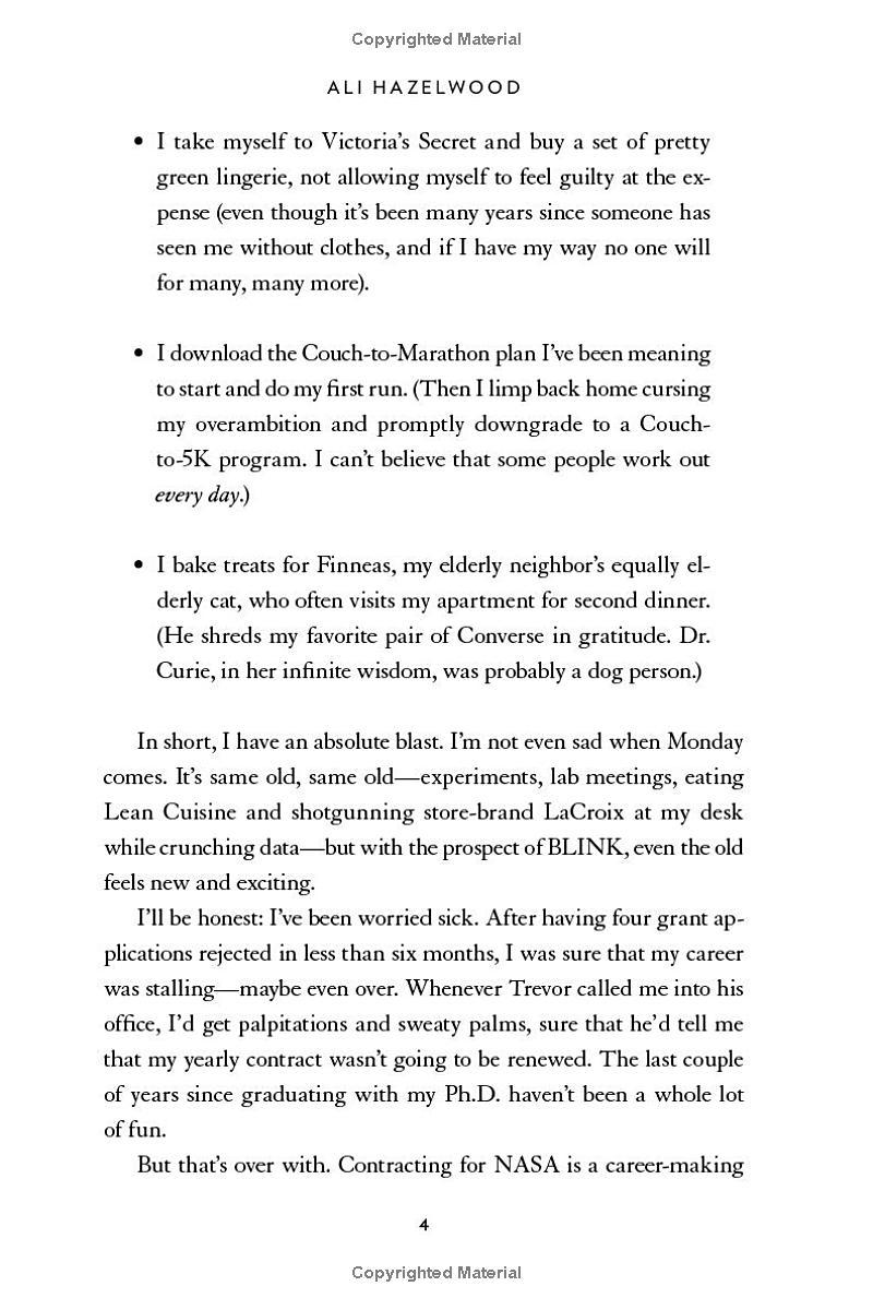 Sure, Levi is attractive in a tall, dark, and piercing-eyes kind of way. And sure, he caught her in his powerfully corded arms like a romance novel hero when she accidentally damseled in distress on her first day in the lab. But Levi made his feelings toward Bee very clear in grad school—archenemies work best employed in their own galaxies far, far away.