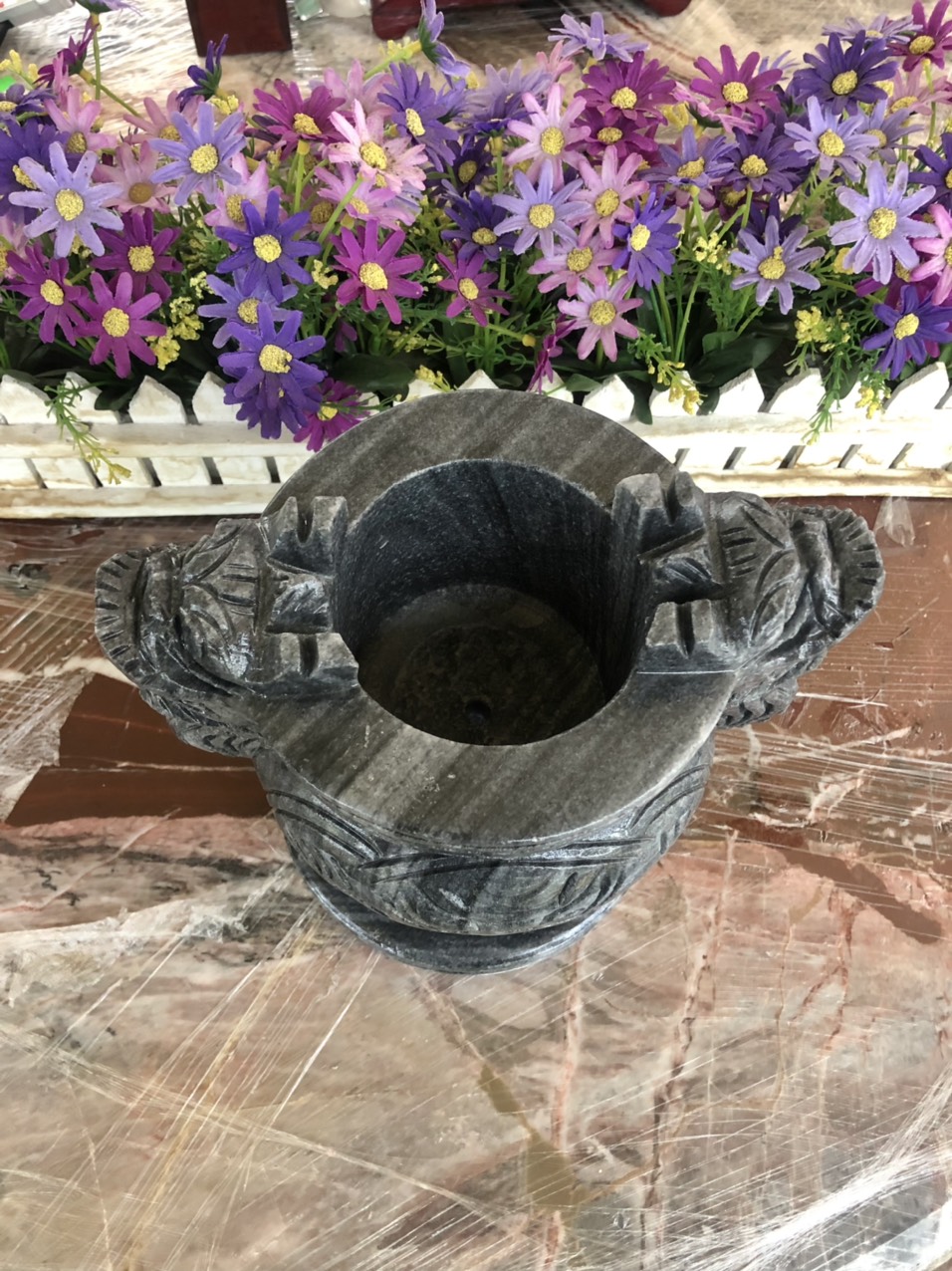 ✨Lư hương, bát hương, bát nhang chạm rồng trang trí bàn thờ, mộ đá cẩm thạch vân đen - Cao 20 cm