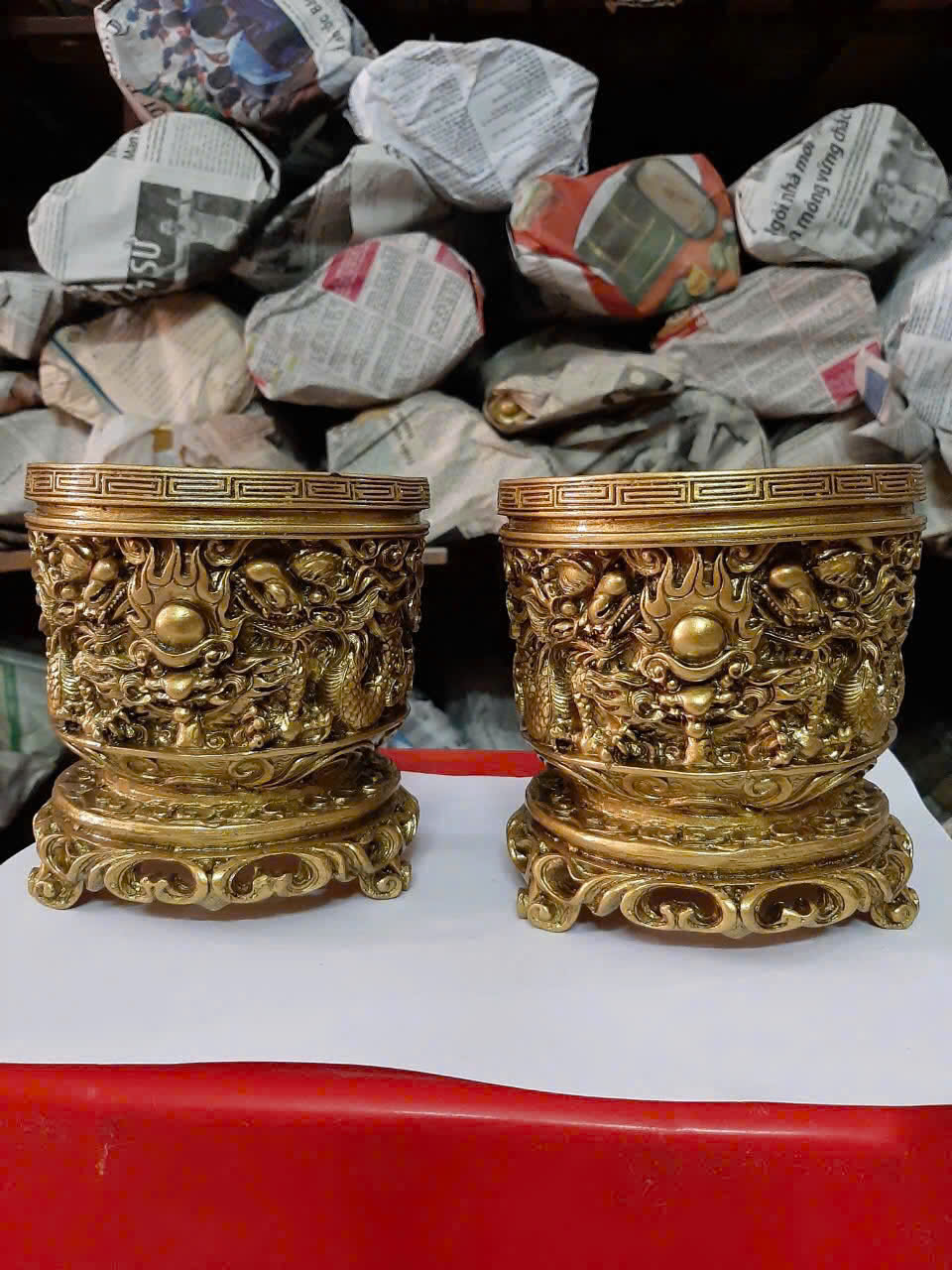 Mua tại TiktokLư hương CTVD40 12 x 12 x 12cm mạ vàng hoặc màu xanh lựa chọn Kích thước: ngang 12 x rộng 12 x cao 12cm Nặng: 0.8kg Chất liệu: nhựa polyester Màu sắc: màu cẩm thạch, màu giả đồng Bạn muốn tặng quà cho bạn bè, người thân của mình