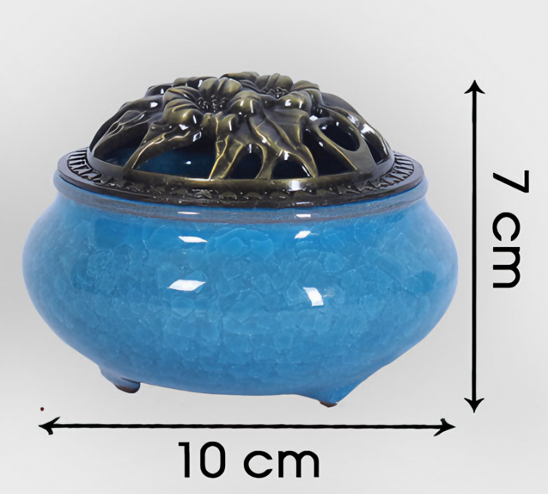 - Bộ Lư Đốt Trầm bằng gốm sứ, - Kích thước: Dài 9cm ; Rộng 9cm ; Cao 8cm - Chất liệu sản phẩm: - Gốm sứ tráng men - Nắp Bằng Hợp Kim Chống