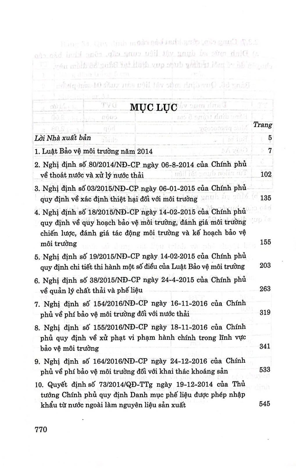 Cuốn sách Luật Bảo vệ môi trường hiện hành (năm 2014) và các văn bản hướng dẫn thi hành của Nhà xuất bản Chính trị quốc gia Sự thật là một hệ thống các văn bản pháp luật về môi trường, được sắp xếp khoa học thuận tiện cho việc tra cứu, sử dụng.