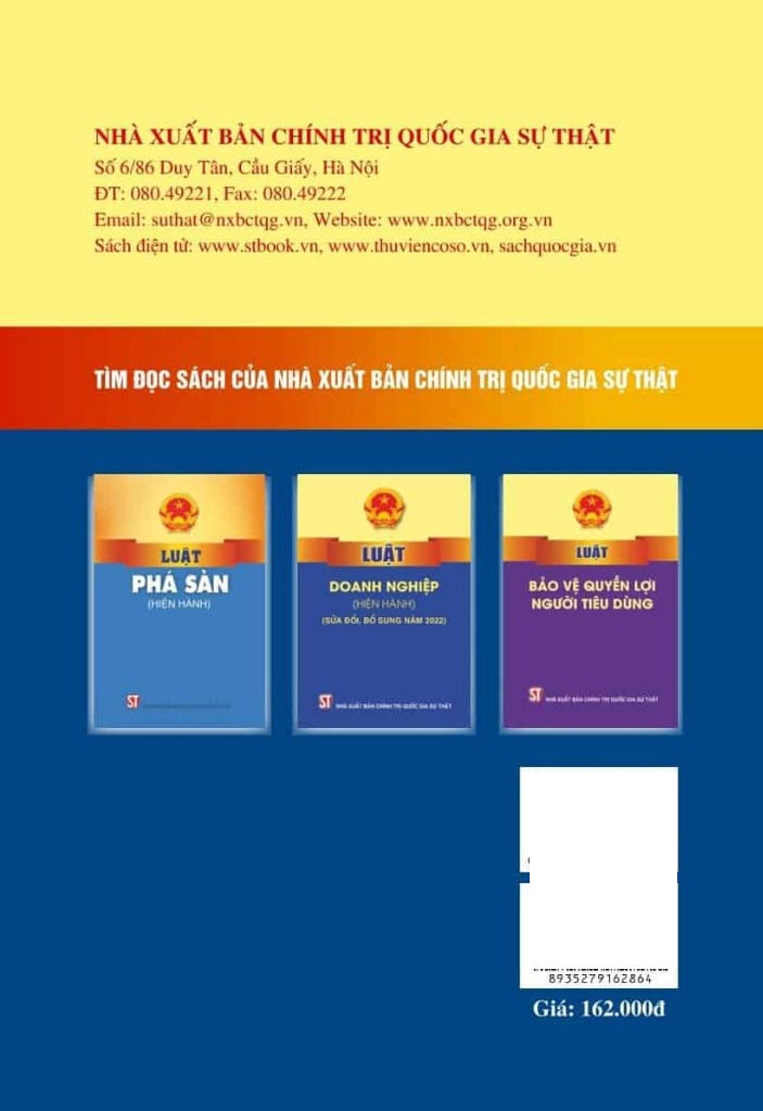 Từ Điển Thuật Ngữ Pháp Lý Thông Dụng Tác giả: Luật gia Trương Ngọc Liêu Nhà xuất bản: Chính Trị Quốc Gia Sự Thật Khổ sách: 14.5*20.5cm Phát hành: 10.2023 Công ty phát hành: Nhà xuất bản Chính Trị Quốc Gia Sự Thật Giá bìa: 57.000 đ  Số trang:144 trang  Hình thức bìa: Bìa mềm Lời giới thiệu:  Thuật ngữ pháp lý là những thuật ngữ dùng để chỉ về những khái niệm thường dùng trong khoa học pháp lý hoặc các văn bán pháp luật và dùng để chỉ, mô tả một cách khái quát nhất, cô đọng nhất các hiện tượng, nội dung, trạng thái pháp lý. Trong điều kiện xây dựng nhà nước pháp quyền của Nhân dân, do Nhân dân, vì Nhân dân ở Việt Nam hiện nay, việc nâng cao tri thức pháp lý cho mọi người dân trong xã hội là việc làm cần thiết. Trong các hoạt động học tập, nghiên cứu, áp dụng pháp luật, việc sử dụng các thuật ngữ pháp lý cũng ngày càng phổ biến. Nhằm phục vụ rộng rãi nhu cầu tìm hiểu, nghiên cứu, học tập, áp dụng các từ ngữ pháp luật của bạn đọc một cách có hệ thống, Luật gia Trương Ngọc Liêu đã biên soạn cuốn sách: Từ điển thuật ngữ pháp lý thông dụng. Nội dung cuốn sách giải nghĩa 505 thuật ngữ pháp lý thường hay được sử dụng thuộc hầu hết các chuyên ngành luật cơ bản như: dân sự - tố tụng dân sự, hình sự - tố tụng hình sư, lao động, hành chính, kinh doanh - thương mại,  được tập hợp từ các quy định của pháp luật hiện hành, sắp xếp theo từng lĩnh vực có đánh số thứ tự.