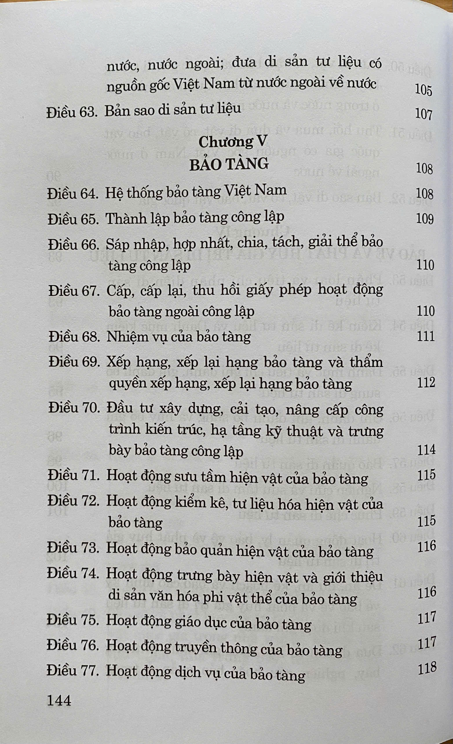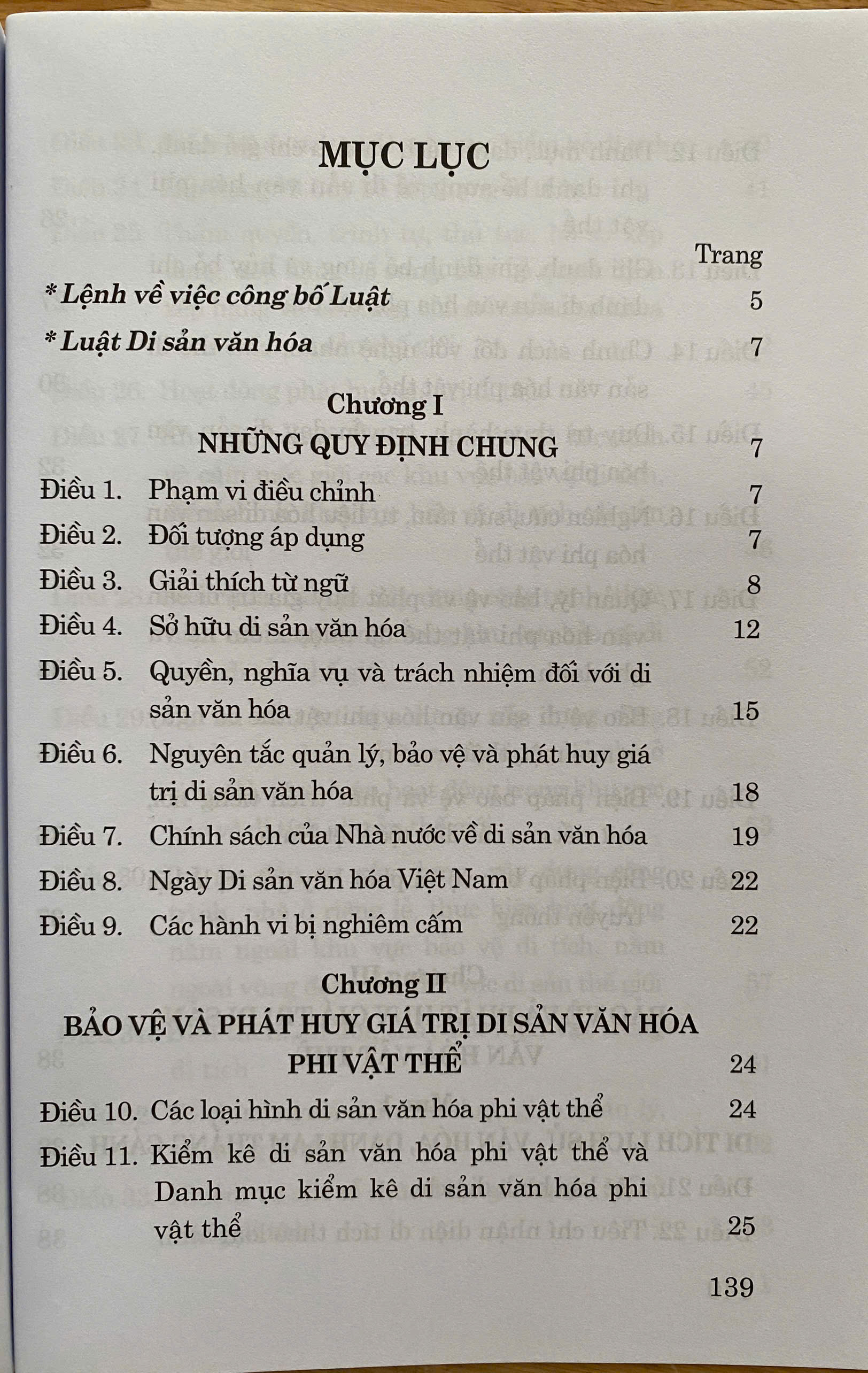 Mua tại TiktokLuật Di Sản Văn Hoá số 45/2024/ QH15 đã được Quốc Hội thông qua ngày 23 tháng 11 năm 2024. Luật gồm có 9 chương, 95 điều. Luật có hiệu lực áp dụng từ ngày 01 tháng 07 năm 2025.