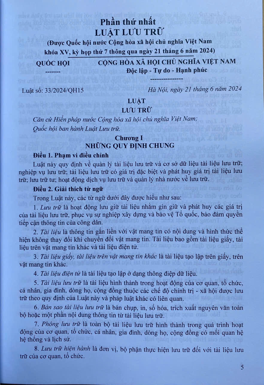 Luật Lưu trữ 2024 - Cẩm nang về công tác lưu trữ cho các cơ quan, tổ chức, cá nhân