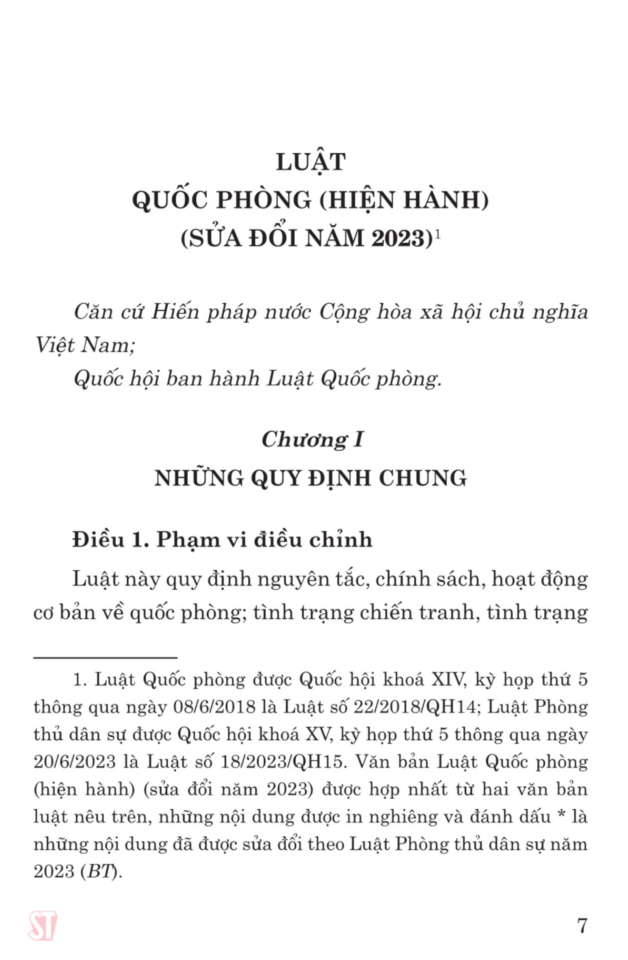 Luật Quốc phòng được Quốc hội khóa XIV, kỳ họp thứ 5 thông qua ngày 08/6/2018, có hiệu lực thi hành từ ngày 01/01/2019, thay thế Luật Quốc phòng năm 2005.