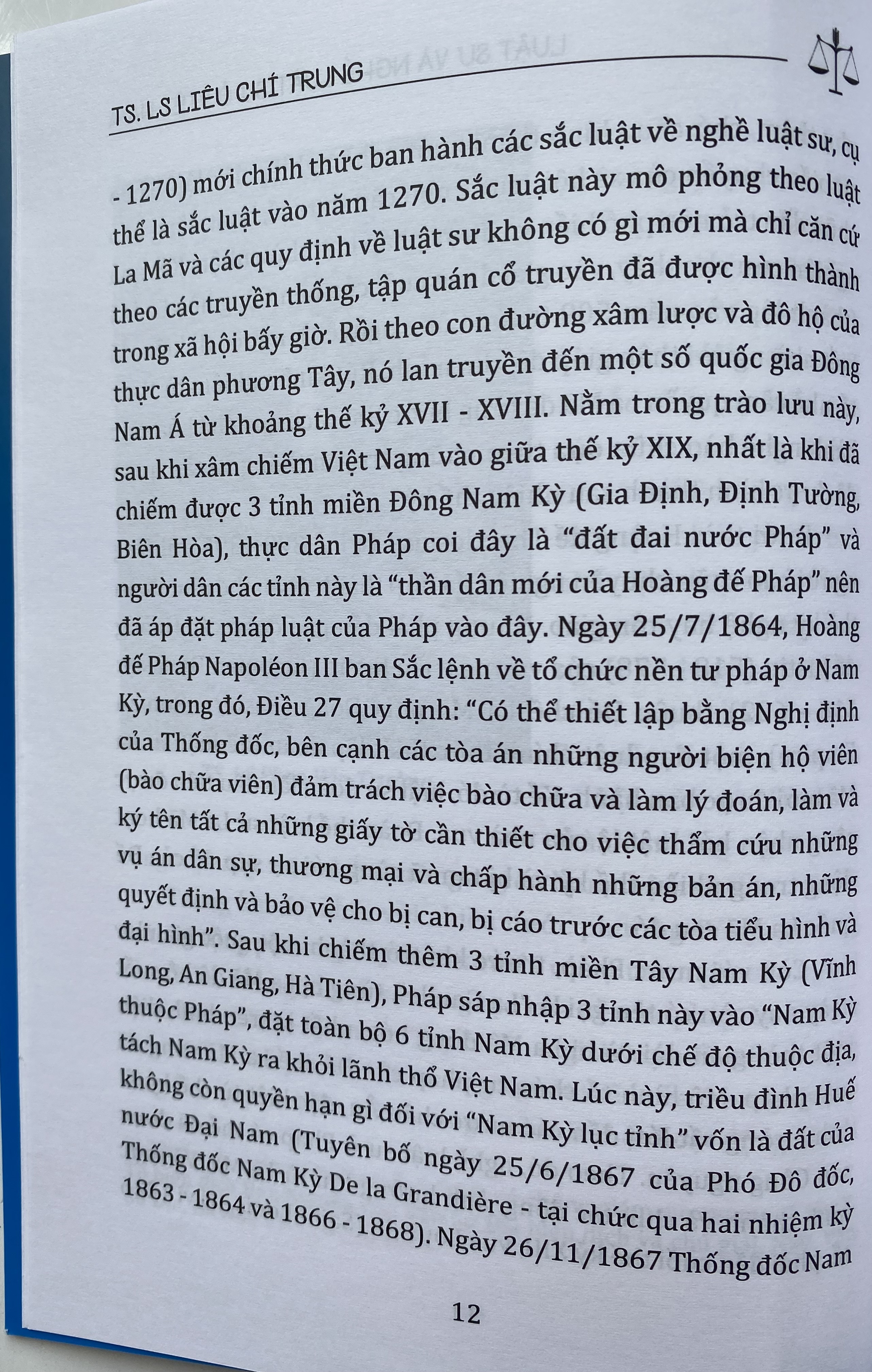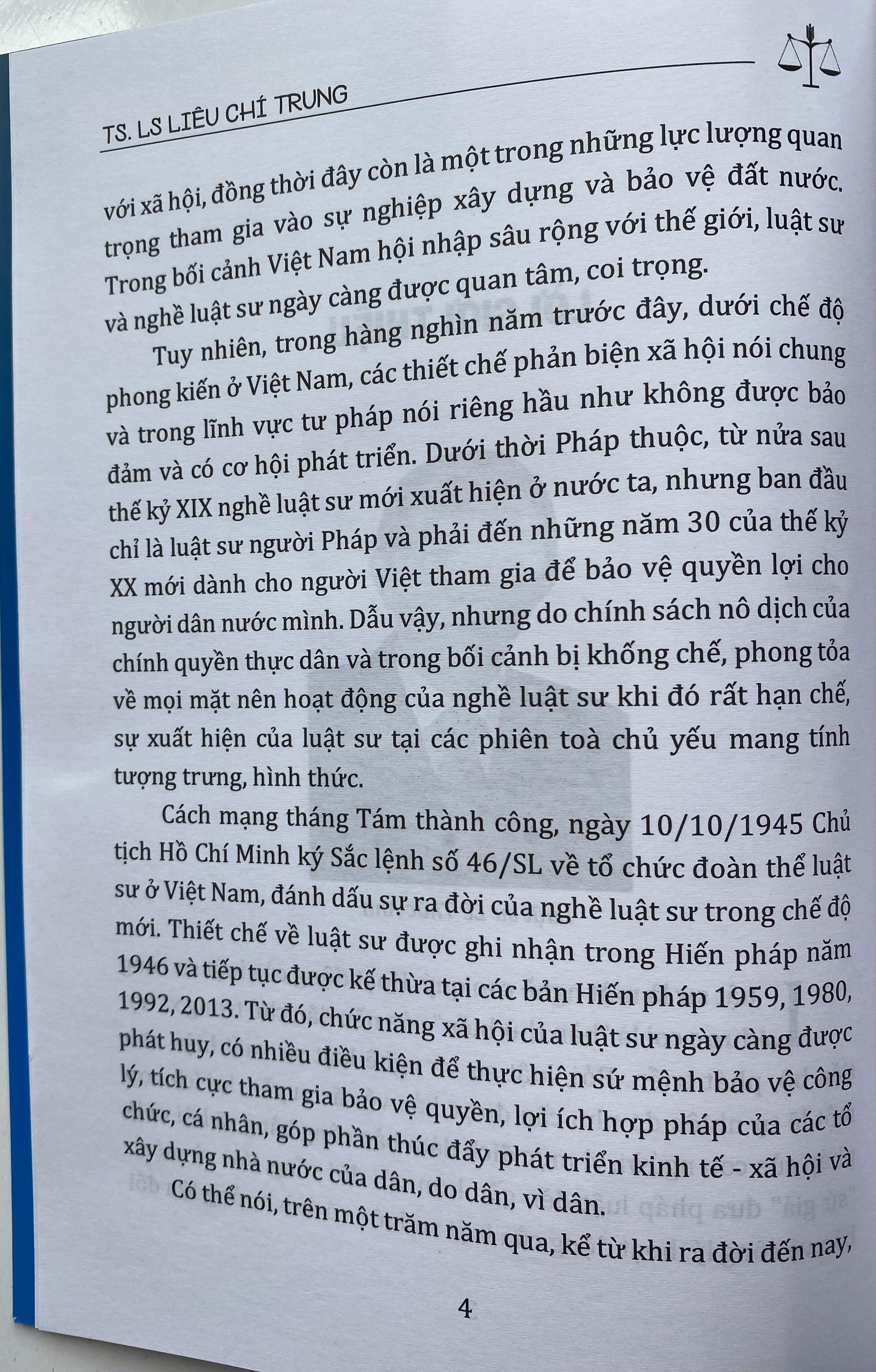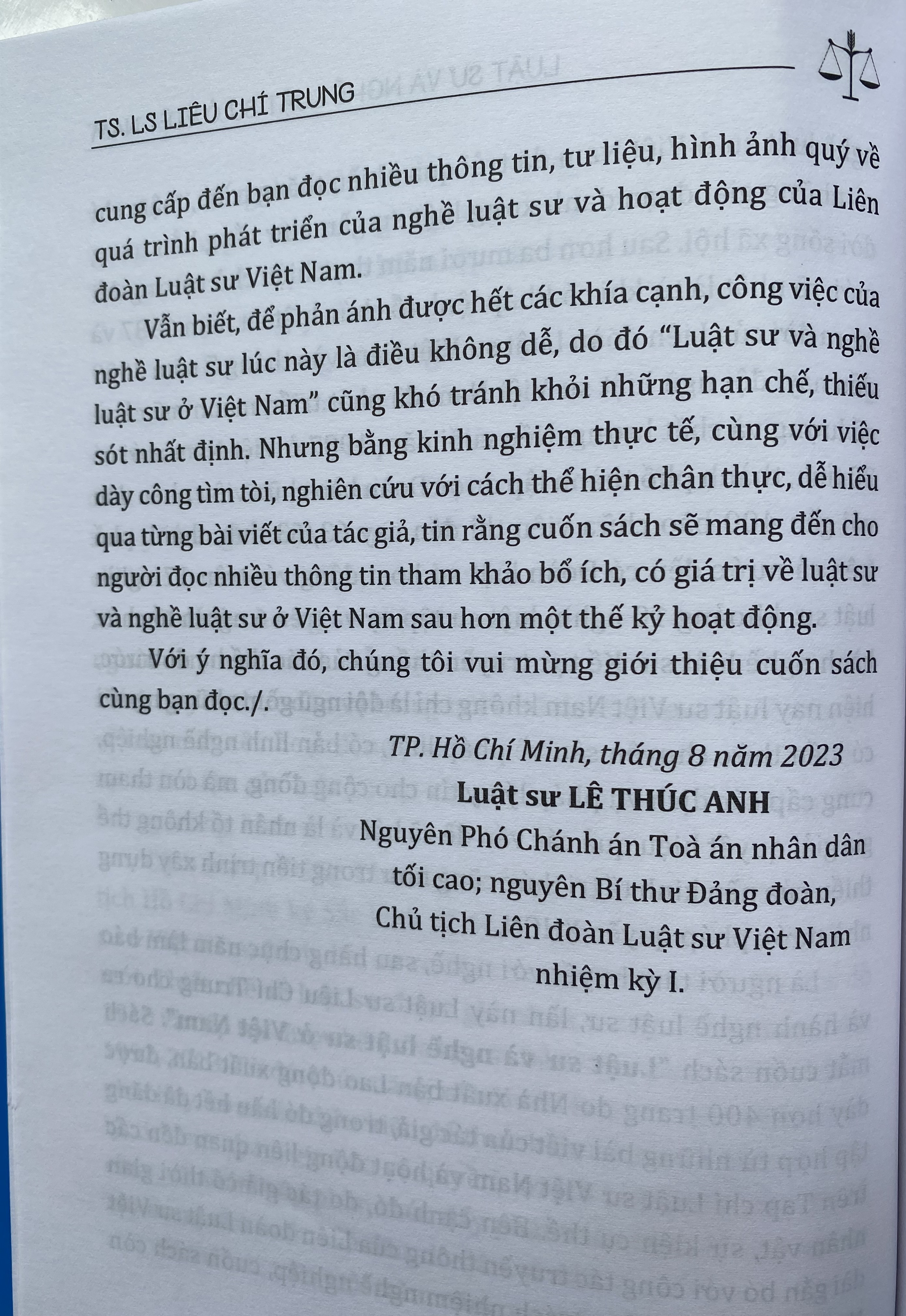 Luật sư là một nghề cao quý. Hoạt động của luật sư cũng được coi là "hàn thử biểu" của nền dân chủ trong xã hội tiến bộ, phát triển. Bởi, luật sư và nghề luật sư xuất hiện như một lẽ tự nhiên do nhu cầu được bảo vệ các quyền, lợi ích hợp pháp của con người, vì mục đích đảm bảo công bằng xã hội và là "sứ giả" đưa pháp luật đến gần hơn với đời sống. Với sứ mệnh bảo vệ công lý, hoạt động của luật sư luôn có ảnh hưởng lớn đối với xã hội, đồng thời đây còn là một trong những lực lượng quan trọng tham gia vào sự nghiệp xây dựng và bảo vệ đất nước.Trong bối cảnh Việt Nam hội nhập sâu rộng với thế giới, luật sư và nghề luật sư ngày càng được quan tâm, coi trọng. Để giúp bạn đọc tìm hiểu thêm về quá trình phát triển của nghề luật sư ở Việt Nam Luatvietbook xin trân trọng giới thiệu cuốn sách " LUẬT SƯ VÀ NGHỀ LUẬT SƯ Ở VIỆT NAM " Tác giả: TS.LS Liêu Chí Trung