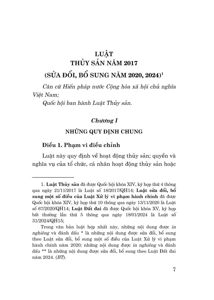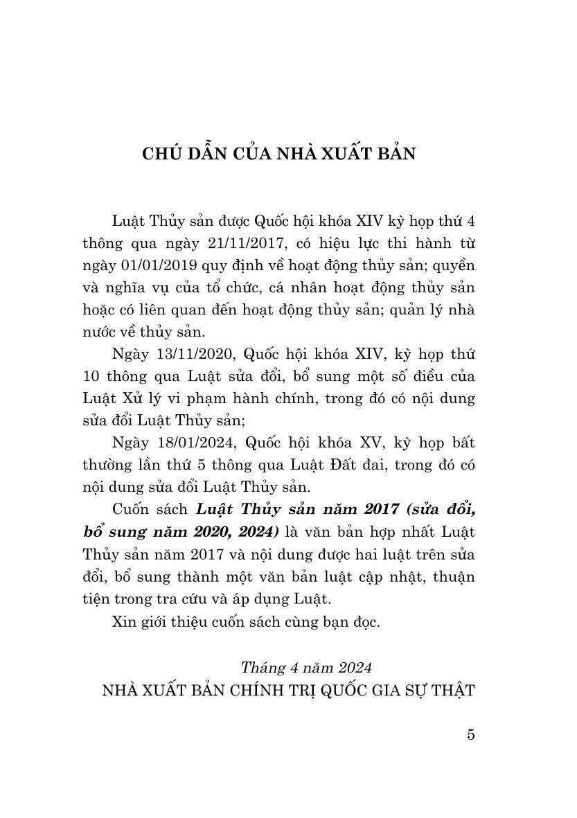 ✨Luật thủy sản năm 2017 sửa đổi, bổ sung năm 2020, 2024 (bản in 2024)