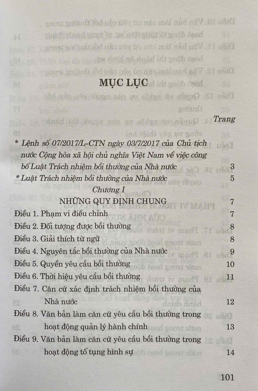 Luật Trách Nhiệm Bồi Thường Của Nhà Nước số 10/2017/QH14 đã được Quốc Hội khoá XIV thông qua ngày 20-06-2017. Luật gồm có 9 chương, 78 điều ( Luật có hiệu luật thi hành từ ngày 01 -07 -2018 )