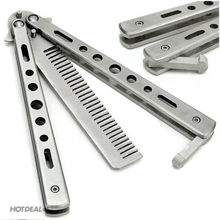 - Sản phẩm Lưỡi Lược Thép Lược Bướm Tập Quay Tay dành cho người mới tập chơi Balisong (Butterfly Knife) với thiết kế thanh lược giả thay cho lưỡi daoO nằm ở giữa rãnh của 2 cán. Chắc hẳn trong chúng ta không ít lần thấy các màn biểu diễn dao bướmM trên các phim hành động, với những tiếng kêu lách tách đầy mê hoặc Balisong lưỡi lược luyện tập mô phỏng y hệt cấu tạo của daoO bướmM thực tế, các khớp nối trơn tru cho việc tập luyện cực kỳ thuận tiện. Giúp bạn luyện tập quay daoO thành thục những động tác cơ bản nhập môn mà vẫn an toàn với đôi tay.