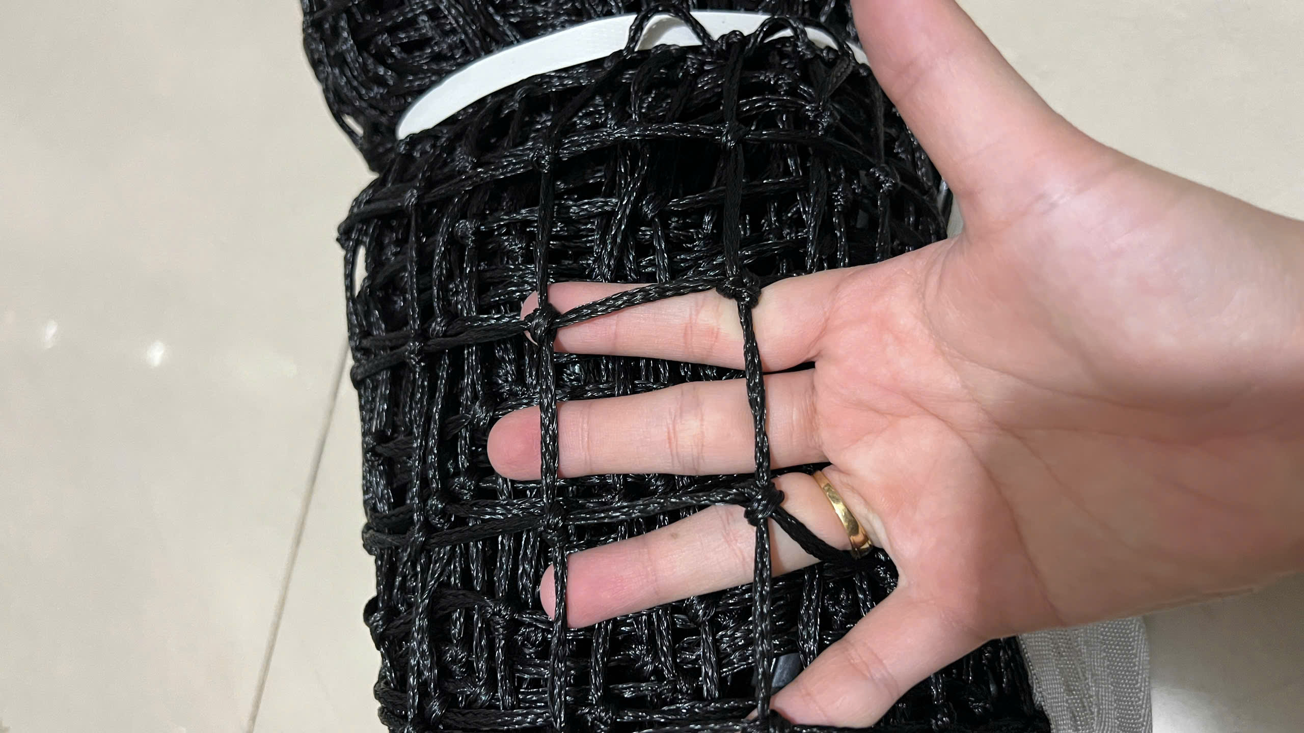 Các ô lưới cỡ 45mm thiết kế chắc chắn, màu đen dễ nhìn thấy trong mọi điều kiện. Độ dày sợi lưới là 3mm.
