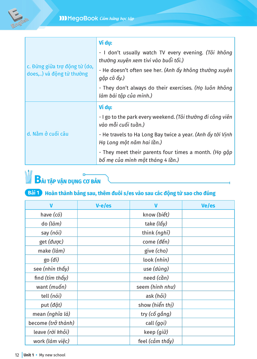 - Nội dung được thiết kế sinh động, logic dễ nhớ Cuốn sách giúp bạn học nhanh chóng ghi nhớ từ vựng có trong mỗi bài học thông qua hình ảnh minh họa và ví dụ cụ thể Hệ thống kiến thức ngữ pháp có trong bài học giúp các em nắm chắc cấu trúc ngữ pháp, sử dụng ngữ pháp dễ dàng với ví dụ chi tiết