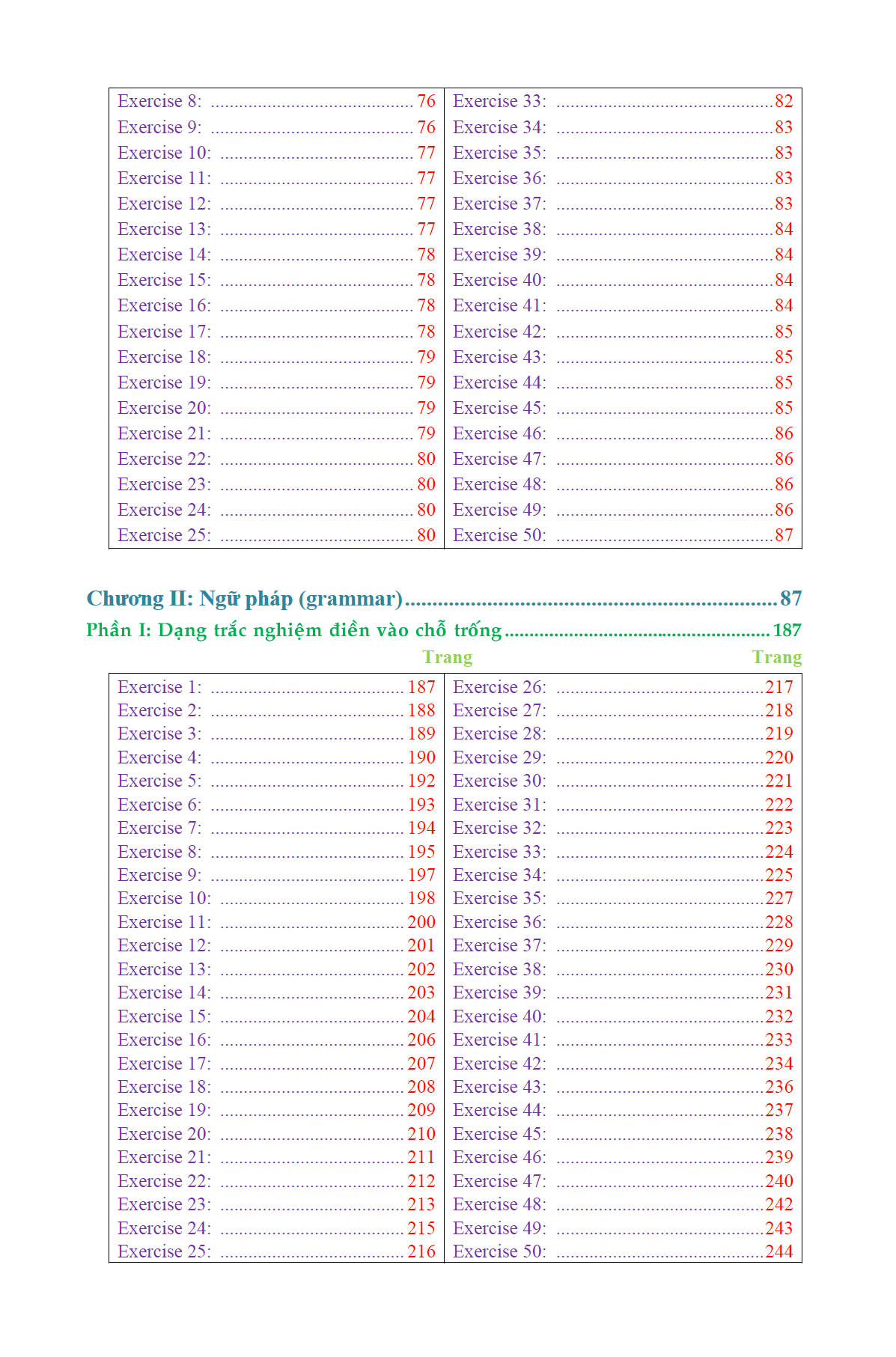 Ngữ pháp tiếng Anh lý thuyết và bài tập thực hành english grammar đề cập đến những vấn đề ngữ pháp thông dụng, cần thiết cho người học tiếng Anh ở mọi trình độ. Với