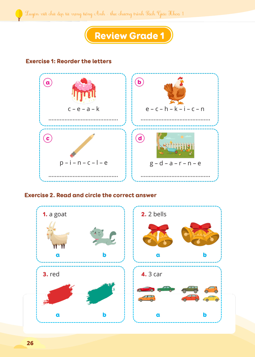 Luyện viết chữ đẹp từ vựng tiếng Anh - theo chương trình Sách giáo khoa 1- là bộ tập viết được biên soạn cho các bé học sinh từ lớp 1, hỗ trợ các bé học hiệu quả, ghi nhớ nhanh từ vựng theo chương trình học trên lớp.