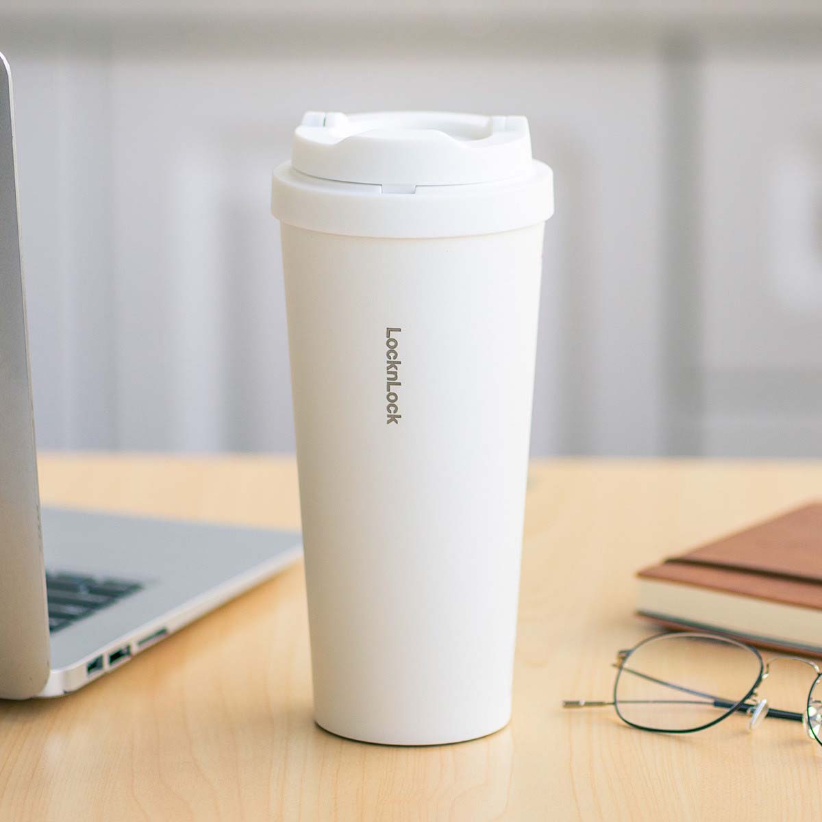 Ly giữ nhiệt LocknLock 550ml màu trắng LHC3249WHT - Hàng chính hãng, mở nắp một chạm, chất liệu thép không gỉ miệng ly rộng - JoyMall