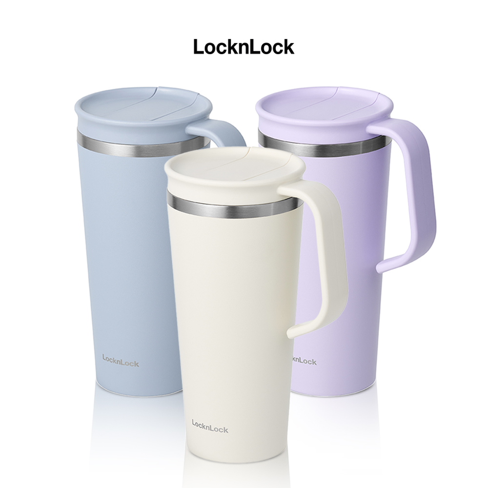 Ly giữ nhiệt LocknLock 473ml có tay cầm LHC4247 miệng ly rộng, đế silicone chống ồn