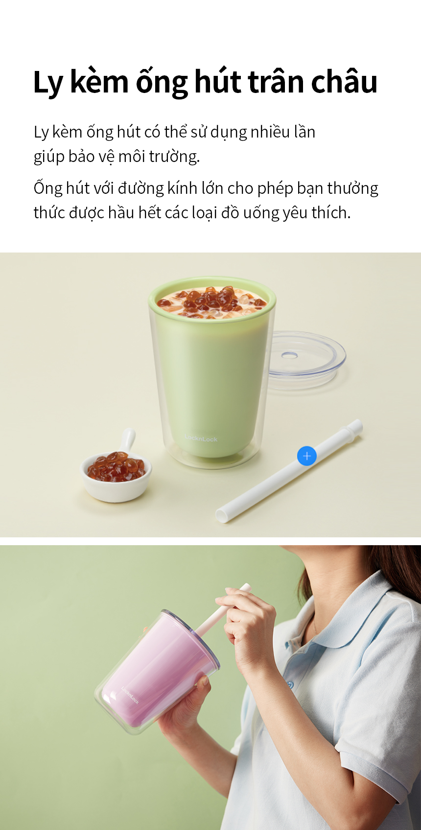 Ly nhựa 2 lớp LocknLock Bubble Tea Cold Cup HAP529 720ml, Hàng chính hãng, kèm ống hút trân châu - JoyMall