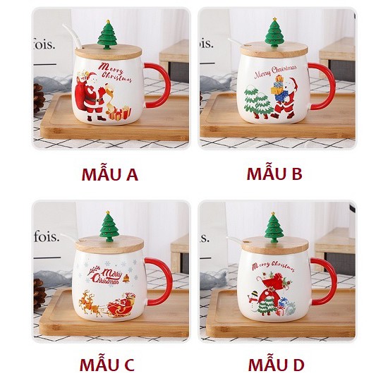 ✨Ly sứ noel 480ml có muỗng sứ và nắp gỗ dễ thương