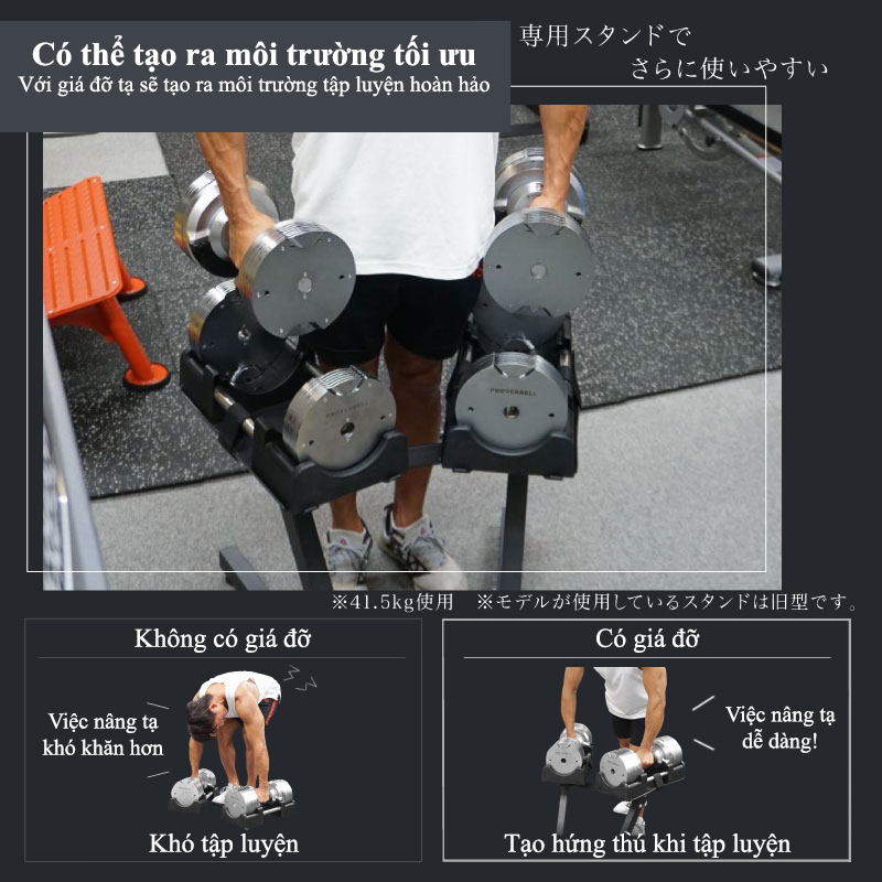 Thông tin tạ tay điều chỉnh 20 Kg - Tạ tay điều chình 20 Kg được thiết kế chắc chắn, với tính thẩm mỹ cao. Có kèm đế đỡ tiện lợi, tránh gây trầy xước cho tạ.