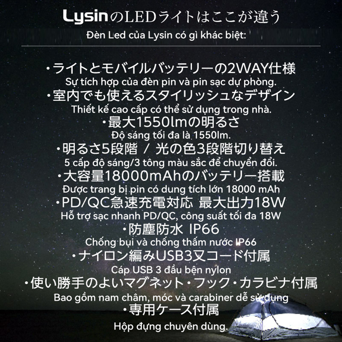✨Lysin - đèn led chiếu sáng cầm tay sạc dự phòng 18000mah,cắm trại du lịch,dã ngoại, camping,picnic ngoài trời tiện lợi đa năng chống thấm nước,chống bụi bẩn.
