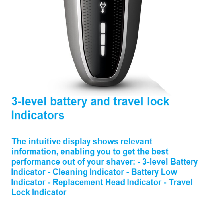 TÍNH NĂNG NỔI BẬT: Lưỡi cạo SteelPrecision Đầu cạo linh hoạt 360 độ Cảm biến bộ điều hợp nguồn Đầu tỉa tóc mai và ria mép tích hợp THÔNG TIN CHI TIẾT: Máy cạo râu