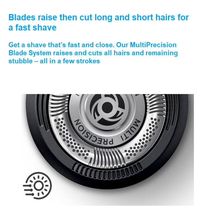 Series 9 Sport+ bao gồm 5 bộ phận cạo được đồng bộ hóa để loại bỏ râu hoàn hảo chỉ trong một lần cạo. Hai tông đơ ở giữa chuyên dụng có thể cắt mọi